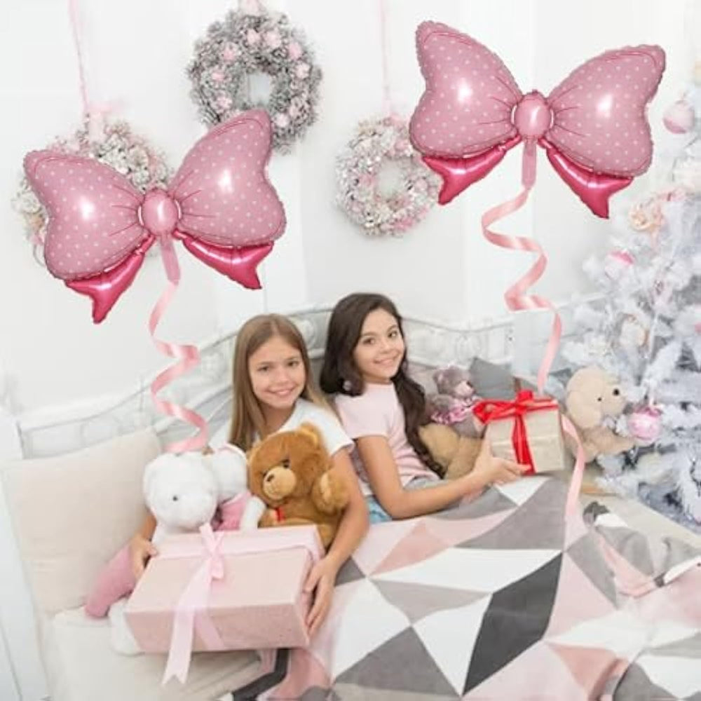 | Material: These Bowtie Pink Balloons Are Made Of Quality Aluminum Foil, Non-Toxic And Safe To Touch, Durable And Stable; The Foil Balloons Allow For Both Air Inflation, Not Easy To Burst Suddenly, Giving You A Nice Using Experience. | | Perfect For Multiple Occasions: Ideal For Baby Showers, Girls’Gender Reveal Parties, Bow-Themed Birthdays, Or Any Celebration Requiring Stylish And Playful Decorations. Suitable For Helium Or Air Inflation, These Balloons Can Be Used As Hanging Decor, Centerpieces, Or Part Of A Balloon Arch. | | Aluminum Foil Balloons-Made Of High-Quality Aluminum Foil Materials, Thick And Self-Sealing, Uniform Color, Beautiful Spherical Shape, Not Easy To Break And Long Lasting?Non-Toxic And Tasteless, With Good Sealing And Durability, Not Easy To Explode And Leak, Not Easy To Crack And Fade.The Surface Of The Foil Balloons Have Metallic Luster, Bright Color, Smooth And Beautiful, Setting Off A Romantic Mood. | | You Can Use A Pump Or A Straw To Blow The Balloon, And They Will Automati