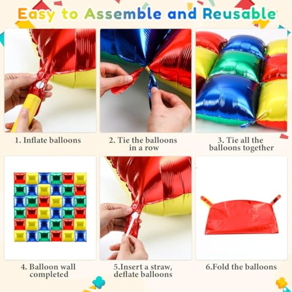 | Super Bros Birthday Decorations Balloons: You Will Receive 2 Straws And 36 Square Foil Balloon Walls, They Are Double-Sided Balloons, There Are Two Color Styles, One Is Red And Yellow, The Other Is Blue And Green; Each Brick Balloons Measures 19 X 19 Inches/ 48 X 48 Cm After Being Inflated; Our Super Bro Birthday Decorations Will Make Your Party Full Of Cheerful Atmosphere And Create An Unforgettable Party | | Reliable Material: Our Foil Balloons Wall Backdrop Are Made Of Quality Polyester Film Material; Compared With Latex Balloons, Square Balloons Can Keep Their Shape Longer And Are Less Likely To Leak Or Burst; In Addition, Due To Our Unique Production Process, The Foil Balloons Kit Is Not Easy To Fade And Can Be Used For A Long Time | | Easy To Assemble: You Can Easy To Make The Double Sided Balloons Wall, Each Metallic Square Balloons Has Four Straps On The Corners; First, Inflate All Balloon; Then, Tie Up The Straps Together, A Stunning Pink Backdrop Is Finished; The Brick Foil Balloon Wall Backdrop Can Be Freely Tied Up As Needed To Decorate Party | | Reusable Balloons Wall: When The Party Is Over, Separate The Blue And Red Square Balloons, Then Deflate Them By Inserting A Straw Into The Inflation Hole To Recover And Reuse Them For Your Next Event While Also Helping To Reduce Waste. You Can Combine And Match These Different Colored Square Balloons To Decorate Your Theme Party | | Wide Application: These Unique And Eye-Catching Balloons Backdrop Wall Not Only Suitable For Baby Showers, Disco Parties, Bridal Showers, Engagements, Birthdays, Gender Reveals, Weddings, Bachelorette Parties, Anniversaries, Graduations, But Also Suitable For Valentine'S Day, Christmas, Mother'S Day, New Year'S Eve, Cartoon Video Game Theme Party Supplies | |