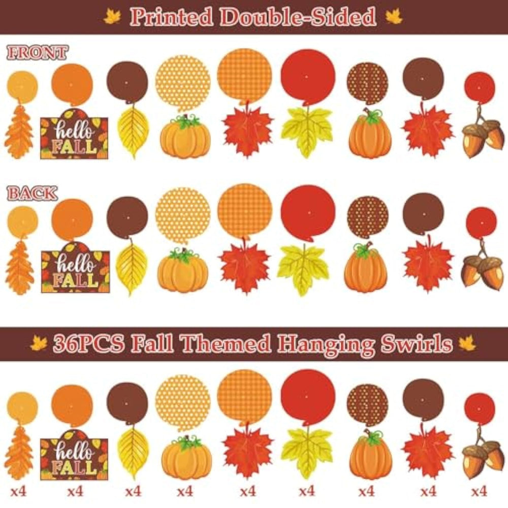 | 36Ct Autumn Theme Hanging Swirls Decorations?Package Contents 36 Ct Hanging Swirls With Autumn Elements Cutouts. Whether You’Re Looking For Fall Party Ideas For Kids, Fall Party Ideas For Adults, This Hanging Whirls Streamers Decor Of Fall Party Themes Will Be A Good Choice For Everyone! | | Prime Quality And Seasonal Designs ?These Autumn Hanging Cutouts Are Made Of Quality-Thick Paper Cardstock With The Seasonal And Vibrant Patterns Printed On Both Sides. Featuring Cutouts Of Pumpkins, Fall Leaves, And Acorns, This Assortment Of Hanging Swirls Which Will Be The Center Of Attention At Your Party. | | Reusable ?There Are 3 Sizes Of Swirls(19",11",6"), Each Features A 7" Cutout, Which Was Already Assembled With The Swirl Beforehand. It Is Very Convenient For You To Hang These Pumpkins And Fall Leaves Decorations From The Ceiling Or Porch To Create An Instant Party Atmosphere. When The Party Is Over, You Can Save It For The Next Time. | | Festive Addition To Any Fall Party!?These Hanging Swirls Are Sure To Be A Huge Hit At Your Party. They Can Be Used As Fall Party Favors And Photo Props. Ideal For An Autumn Birthday Party, Bridal Shower, Wedding, Baby Shower, Halloween, Harvest Thanksgiving, Backyard Fall Campfire Party, Or Any Fall Theme Party Celebration Events. | | Quality Assurance?If You Have Any Question, Please