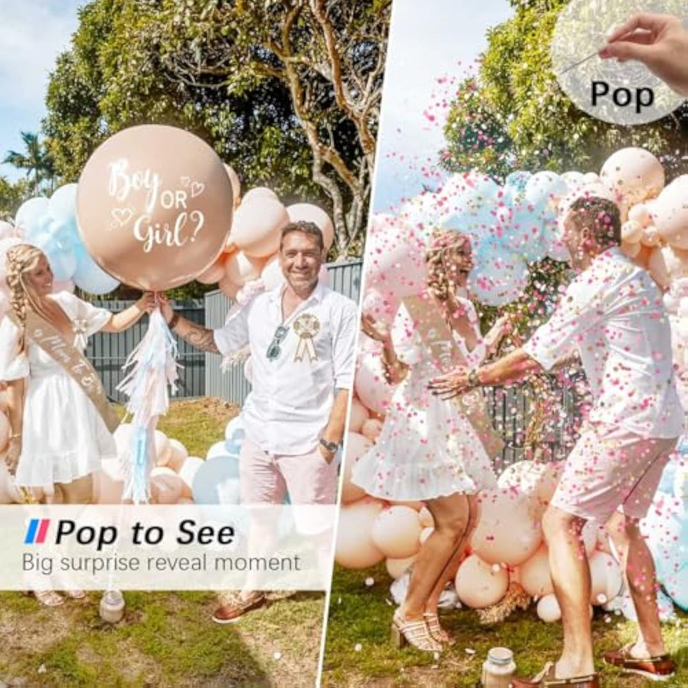 | Warm Tip: Use Non-Helium Gas Like Air For Best Float. A Bit Heavier Yes—But Our Premium Double-Lined Balloons Design Always Keeps Confetti Colours Secret! Never Cheap-See-Through Like Cheaper Gender Reveal Balloon | | Super Cost-Effective: Whether It'S Intimate Family Gathering Of 10 Or Lively Gender Reveal Party Of 50, Our Gender Reveal Balloon Fits Any Venue Size Effortlessly | | Easy To Cleanup: Unlike Powder, Gender Reveal Ideas Balloon Confetti Won'T Tightly Adhere Or Penetrate The Floor. Just Sweep It Up | | Trendy Stlish Look: Ditch The Dull All-Black! Our Neutral Gender Reveal Balloons Ideas Feature A Chic Rustic Boho Design, Perfect For Creating Gender Reveal Worthy Moments That’Ll Flood Your Feed With Likes | | Easy To Use: Simply Pop With Pin, The Suspense Of Popping Gender Reveal Balloon And The Gorgeous Confetti Shower Left Everyone Cheering And Snapping Photos | |