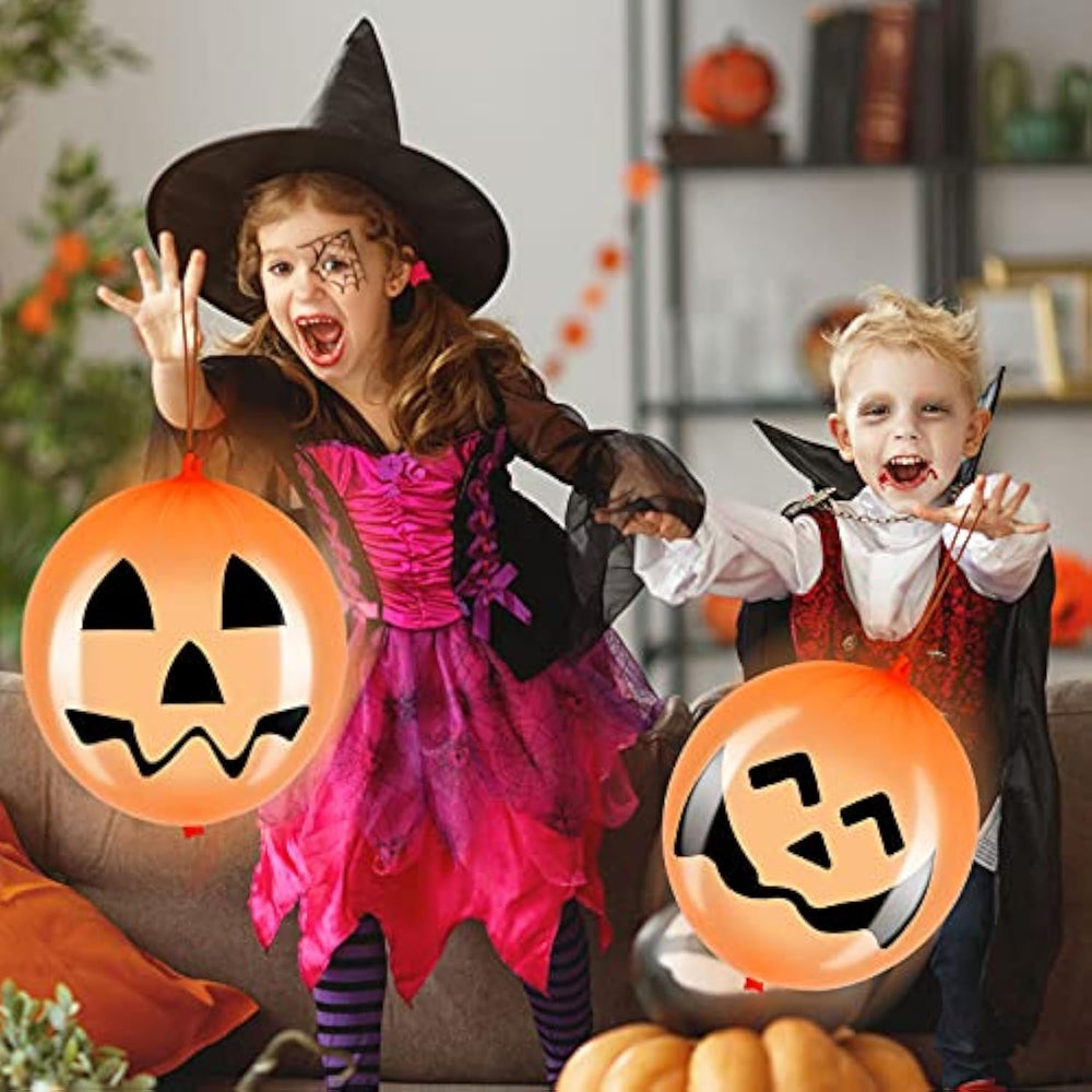 These Halloween jack-o’-lantern balloons are made from thick, durable latex with a smooth surface for safety and sturdiness. The set features 9 different facial expressions, including happy, sad, shy, laughing, and calm, adding variety and fun to your décor. Perfect for Halloween parties, trick-or-treat events, classroom games, or as festive gifts, they create a playful and spooky atmosphere for any celebration.