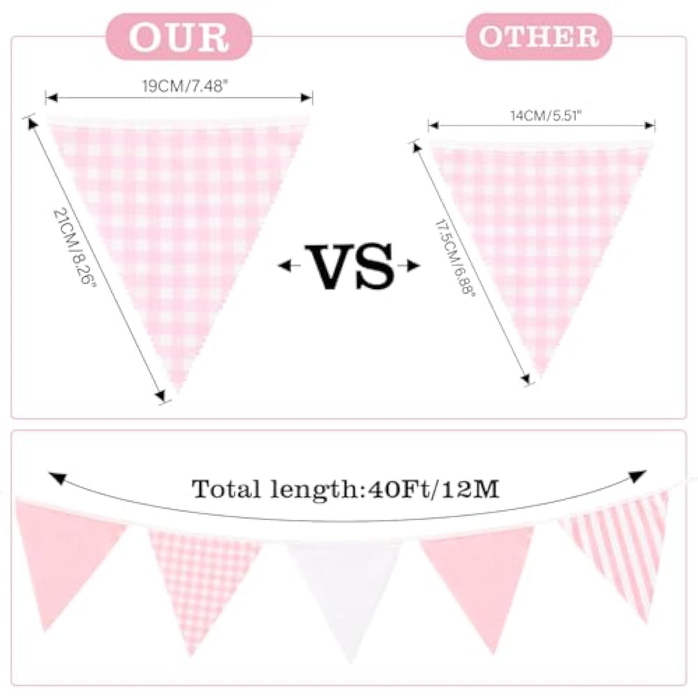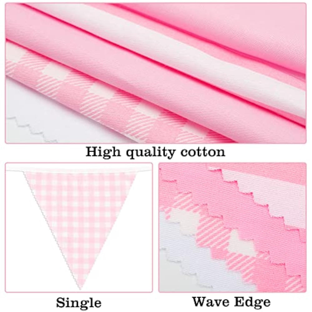 | [The Size Of Pennants Bunting]-You Will Get 12M/40Ft Pink White Valentine Fabric Garland, Which Is Long Enough To Decorate A Whole Room. Or You Can Cut Your Needed Length. And Each Triangle Flag Measures Approx. 19 X 21Cm/ 7.6 X 8.4 Inches, Total 42 Pieces Flags, Which Is A Little Larger Than The Size Of Other Flags For A Better Looking, Brighter Finish, And Easier To Be Seen. | | [Material]-Our Bunting Banner Is Made Of Cotton Fabric. It Is Weather-Resistant, Reusable, And Washed Well, Can Be Reused Time And Time Again. You Can Wash This Cute Fabric Bunting By Machine And Iron, No Fade. | | [Striped And Checkered Triangle Pennant Banner]-This Valentine Fabric Garland Is Designed With Striped, Gingham Pattern And Waves Edge, Looking Perfect When Decorating Your Pink Party Or Pink Theme Bedroom, Adding Some Color To A Blah Table Or Wall. | | [Pink Party Garland Decoration]-This White Pink Fabric Bunting Garland Is Easy To Hang, As Each Side Has 19" Of Free String. Good For Pink Theme Party Decoration. Such As Pink Wedding, Baby Shower, Valentine'S Party, Pink Barbie Party, Etc. | | [Promise]-Our Quality Cotton Material Provides You With A Long-Lasting Product And 48-Day Money-Back. You Can