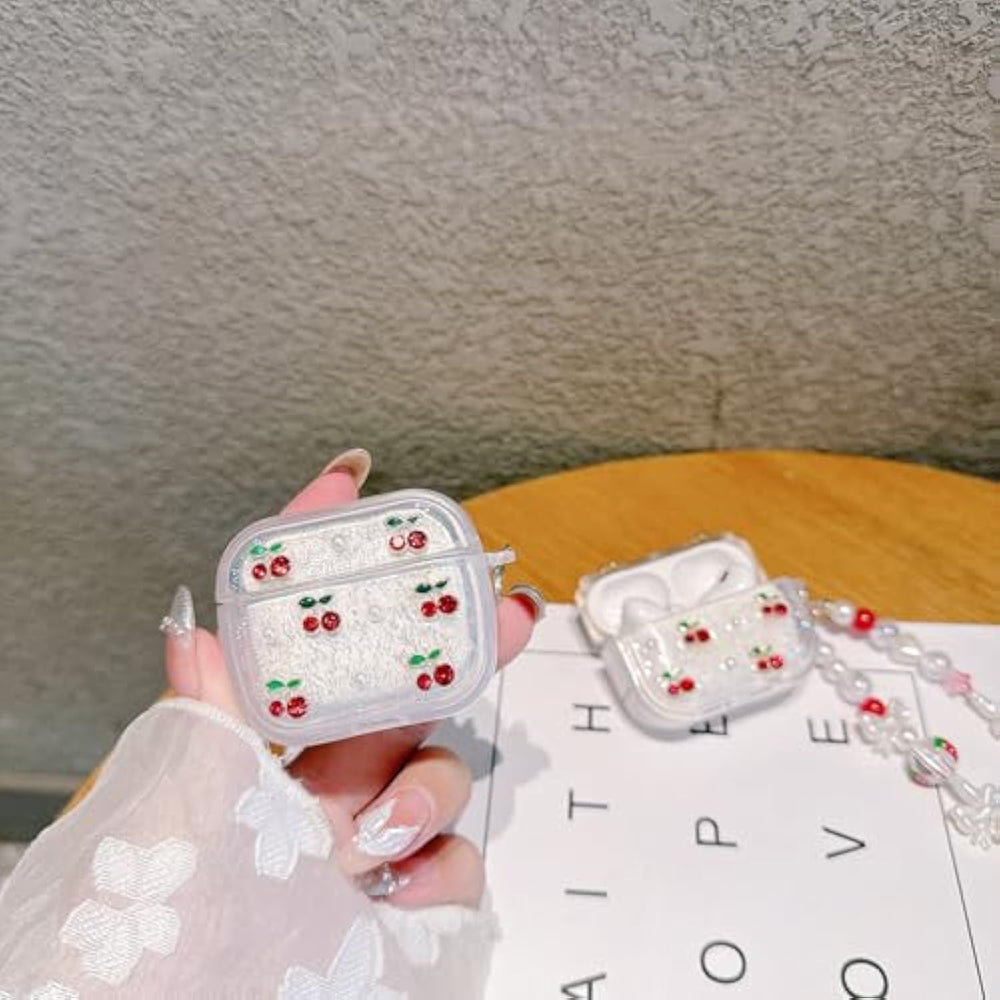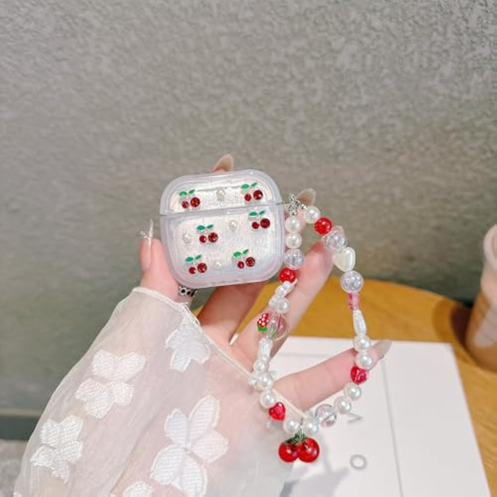 | Stylish Design: This Clear Case Featuring Decorative 3D Cherry Crystal Embellishments, Creating An Aesthetic And Fashionable Look | | Protective Features: Shockproof Clear Cover Safeguards Your Earphone Against Drops, Scratches, And Daily Wear While Maintaining Full Access To Charging | | Decorative Strap: Elegant Pearl Beaded Keychain Strap With Cherry Charm Adds Both Style And Functionality, Making It Easy To Carry And Locate | | Compatible Models: Compatible With Airpods 4. Providing A Snug And Secure Fit | | Accessory Details: Package Includes Clear Protective Case With Embedded 3D Cherry Designs And Detachable Pearl Keychain Strap With Decorative Elements | |