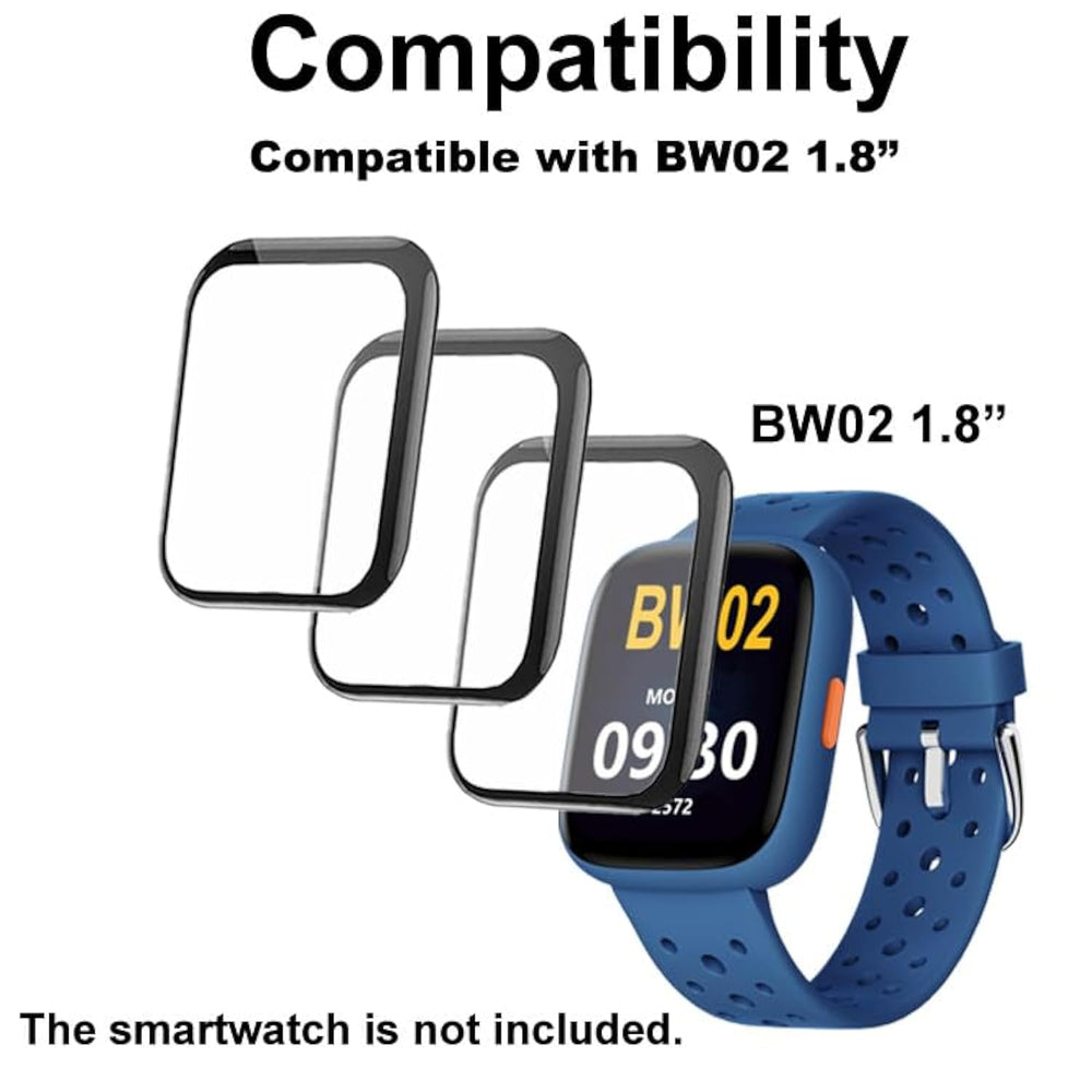 | 3D Screen Protectors Compatible With Bw02 Biggerfive 1.8” Smart Watch | | You Must Watch The Instruction Video Here And Read The Instruction Manual Before You Install The Protector To Watch’S Screen | | 3D Full Covered Screen Protector: Pmma Material, Fully Protect The Screen Of Smart Watch Including The Edge Of The Screen | | High Transparency: You Can See The Screen Display Clearly, More Transparent Than Glass | | Anti-Shatter, It Will Not Break Like Other Tempered Glass Protector | | Anti-Scratch | | Easy Installation: If There Are Bubbles Under The Protector, Please Just Peel Off The Protector And Install It Again | | Package Includes: 3 3D Screen Protectors, 3 Dry Wet Wipes, 3 Dust Absorbers, 1 Squeegee, 1 Foam Ring Sticker, 1 Instruction Card For Diy | |