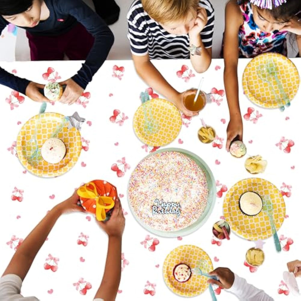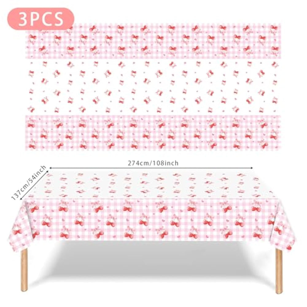 | Cherry Tablecloths: You Will Get 3Pcs Cherry Tablecloths For Birthday Party, Size 57X 107 Inch. Sufficient Quantity And Size To Meet Most Of Cherry Birthday Party Decorations For Girl | | Cherry Theme Party Design: Set Includes 3 Pink Tablecloths Featuring Charming Bow Patterns In A Coquette Cherry Design, Decorate Fruit Birthday Party With These Cherry Decor , Which Can Make Your Party Full Of The Dreamy Cherry Atmosphere | | Durable Material: Cherry Tablecovers Are Made Of Quality Plastic, Waterproof, Sturdy And Easy To Clean, Can Wipe With A Damp Towel Conveniently; Their Disposable Nature Makes Post Event Cleanup A Breeze, Saving You Time And Effort Without Sacrificing Style | | Widely Application: These Cherry Bow Party Table Cloths Are Suitable For Various Events And Parties, Such As Bachelorette Party, Baby Shower, Bridal Party, Wedding, Bow Theme Party, Cherry Theme Party, Bachelor Night Party, Birthday Party, Afternoon Tea Party, She'S The Cherry On Top Theme Party Etc.; Adding Warmth And Romance To Every Party | | Easy To Clean: Our Cherry Party Supplies Tablecloths Are Disposable. It Can Protect Your Table From Fruit Juice And Food Residue. After The Cherry Party, You Can Simply Wipe It With A Damp Cloth Or Directly Wrap The Garbage And Throw It Into The Trash Can | |
