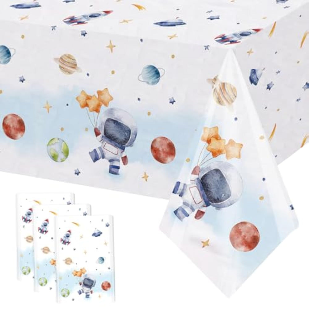 | Dimensions: Extra-Large Party Tablecloth Measuring 108 X 54 Inches, Perfect For Rectangular Tables. Comes In A Value Pack Of 3 Pieces | | Design: Charming Outer Space Theme Featuring Astronauts, Planets, Rockets, And Stars In Delightful Watercolor Style Against A White And Light Blue Background | | Material: Made From Disposable Plastic Material That'S Easy To Clean And Practical For One-Time Use At Special Events | | Versatile Use: Perfect For Space-Themed Birthday Parties, Baby Showers, Astronomical Celebrations, And Educational Events | | Decorative Elements: Features Detailed Illustrations Of The Solar System, Spaceships, Stars, And Cute Astronaut Characters In Blue, Red, And Golden Colors | |