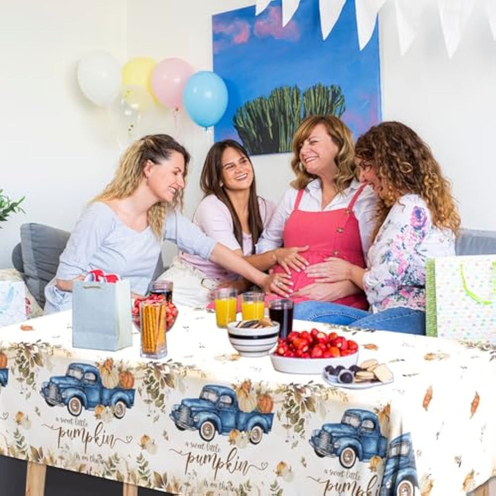| Little Pumpkin Tablecloth: You Will Get 3 A Sweet Little Pumpkin Is On The Way Baby Shower Tablecloths. Fall Baby Shower Decorations Table Cloths Size Is 70.8X42.5 Inches. They Are Suitable For Fall Baby Shower Party, Giving Your Pumpkin Baby Shower Party A Very Formal And Unique Feeling | | Premium Material: The Autumn Pumpkin Plastic Tablecloth Is Made Of Waterproof Plastic, Keeping Your Table From Stains Caused By Food, Drink And More. You Can Use This Baby Shower Tablecloth To Protect Your Table And Celebrate Fall Baby Shower At The Same Time By Making Use Of This Pumpkin Table Covers | | Blue Truck Fall Pumpkin Design: This Pumpkin Fall Party Decorations Tablecloth Set Is Designed In Blue And White Color, With The Words "A Sweet Little Pumpkin Is On The Way" Printed On It. The Disposable Plastic Table Cloths Can Make Your Fall Pumpkin Baby Shower Party Full Of The Atmosphere | | Easy To Clean: The Autumn Pumpkin Plastic Tablecloth Is Waterproof And Easy To Clean Up. These Fall Party Table Cloth Are Disposable, So You Don' T Even Have To Worry About Cleanup After You''Re Finished. Simply Crumple The Tablecover And Toss It In The Waste Bin, It Will Really Save Your Time After The Thanks Giving Fall Little Pumpkin Baby Shower Party | | Wide Application: These Fall Little Pumpkin Party Decorations Are Suitability For Fall Baby Showers, Pumpkin Baby Shower, Fall Themed Party, Baby Shower, Girls Boys Gender Reveal, Children'S Party, Birthday Party And Autumn Party. These Decorations Are Also A Perfect Match For Other Thanksgiving Party Items Like Party Banners, Party Bags, And Party Backgrounds | |