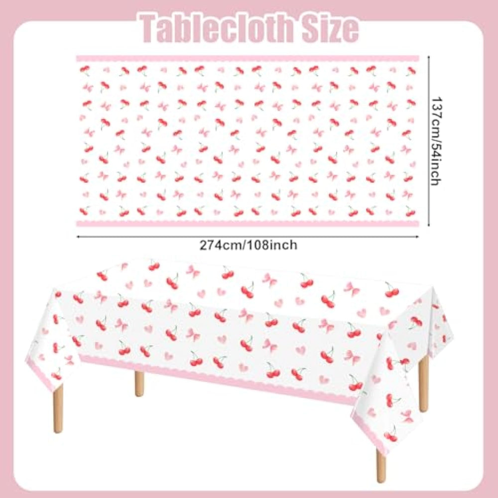 | Tablecloth Package: Our Package Includes 3 Pcs Cherry Bow Tablecloths, Each Measuring 54*108 Inches/137*274 Cm, Suitable For Most Tables. It Can Meet Your Needs For Everyday Use Or Festive Occasions. | | Quality Material: Cherry Party Tablecloths Are Made Of High Quality Plastic With Smooth And Soft Surface, Which Has Good Waterproof Properties To Protect Your Table From Stains Such As Food And Drinks. Meanwhile, The Smooth Surface Is Also Convenient For You To Clean The Stains On The Tablecloth, Giving You A Good Party Experience | | Cherry Theme Design: Cherry Table Cover Is Sweet And Fresh With White And Pink As The Main Color, And The Surface Combines Cherry, Bow, Love And Other Patterns. The Colors Are Bright And Vivid, Adding More Sweet And Lovely Atmosphere To Your Party. Ideal For Cherry Party Decorations | | Easy To Clean Up: The Pink Bow Table Cover Is Disposable. After The Meal Is Over, The Tablecloth Can Be Easily Packed Up To Clean Up Trash And Stains, No Need To Wash It, Save Time. Bring You A Relaxing And Pleasant Party Experience | | Widely Used: Cherry Table Cloths Are Not Only Suitable For Cherry Theme Party Decorations. It Is Also A Perfect Addition To Wedding , Baby Shower, Bow Party, Valentines Day, Coquette Birthday Decorations. You Can Use It As A Photo Backdrop, Decorative Background, Etc. To Make Wonderful Memories On This Special Day | |