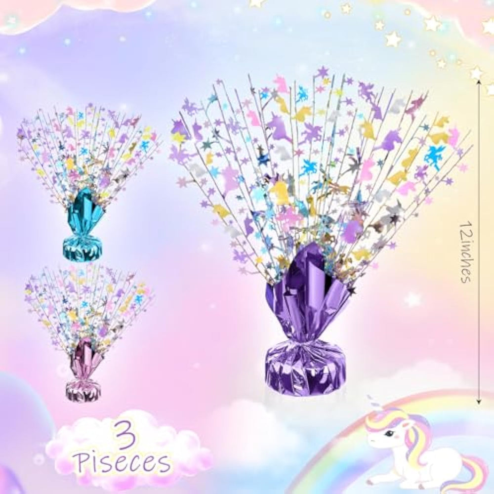 This set includes three beautiful rainbow unicorn branch table centerpieces, each with a sturdy base to ensure they stay in place and enhance the party atmosphere. Crafted with a soft plastic imitation unicorn model and foil spray branches, these centerpieces sparkle in the light, creating a magical unicorn-themed vibe. The flexible design allows you to adjust the branches to your liking, offering endless customization options to suit your party style. Standing at 12 inches, these centerpieces are the perfect size to be placed on various tabletops or other spaces, adding vibrant color and charm without being too obtrusive.