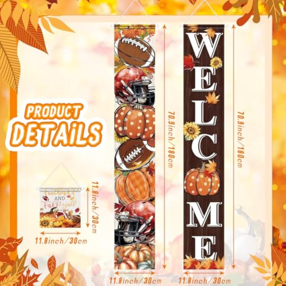 | Package Included: You'Ll Receive 3 Pieces Of Football And Fall Y'All Yard Banner Sign, Size Is 11.8 X 70.9 Inch/ 30 X 180 Cm, 11.8X11.8Inch/ 30 X 30Cm With 2 Rods At The Top And Bottom; With Lettering " Football And Fall Y'All " And Pumpkins Design, Easily Stands Out To Catch Everyone'S Eye | | Quality Material: Made Of Lightweight Polyester Oxford Fabric, Fine Workmanship And Thick. With The Unique Printing Process, The Color Are Bright And Water Resistant. The Hanging Rod And String Are Heavy-Duty And Abrasion-Resistant. It Also Can Be Reused And Easy To Store | | Unique Design: Our Fall Door Porch Banner Come With Large "Welcome" Letters Stenciled On It, Well Printed With Maple Leaves, Sunflowers, Pumpkins Patterns, Which Conveys A Warm And Wonderful Atmosphere For Your Party | | Easy To Use: There Are A Pre-Assembled Rod And String On The Top And Bottom Of The Banner For Easy Hanging Outside Or Inside; You Can Hang Some Heavy Items On The Banner To Prevent It From Drafting By Wind, Such As Using Tapes, Nails, Or Hooks To Fix The Position | | Wide Occasion: It Is Suitable For Porch, Hallway, Veranda, Patio, Garden, Fireplace, Front Door, Window, Yard, Wall, Front Porch And Whatever You Like Place. This Is A Great House Welcome Sign That Will Be A Lovely Accent. Welcome Your Guests And Bring More Festive Mood. Use It As A Background To Take Unforgettable Photos With Your Family And Friends | |