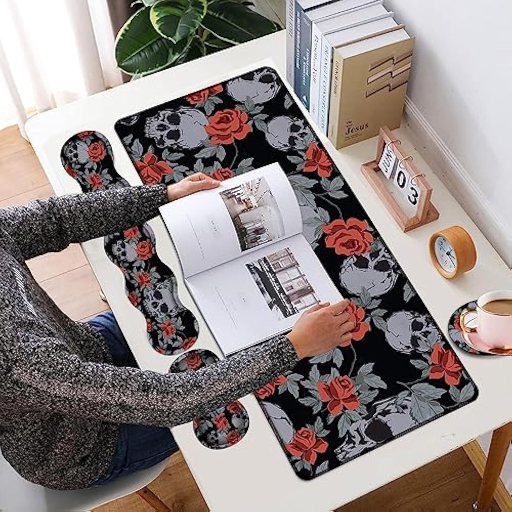 | ???Package And Size?: You Will Get A 1* Expansion Keyboard Mousepad (31.5 * 11.8 * 0.08 Inches); 1* Memory Foam Keyboard Wrist Pad (17.3 * 3.5 * 0.98 Inches); 1* Mouse Wrist Pad (6.8 * 3.5 Inches); 1* Matching Coaster (3.94 * 3.94 Inches). The Gaming Mouse Pad Is Large Enough To Provide Plenty Of Space For Professional Gaming Or Office Work And Keep Your Desk Clean. | | ???Smooth Surface?: The Mousepad Kit Consists Of A Comfortable Lycra Surface And A Soft, Smooth Breathable Material. Let Your Mouse Provide Optimal Speed And Precise Control. Keyboard Pad And Mouse Wrist Support Pad, With Memory Foam Design, Slow Rebound, Not Easy To Deform, Provide Comfortable And Elastic Support For The Wrist. | | ??? Ergonomic Design?: This Keyboard Pad And Mouse Wrist Support Pad Have An Ergonomic Shape For Long Hours Of Work And Play Without Soreness, Minimizing Stress And Fatigue On The Wrist. | | ???Non-Slip Machine Wash?: The Back Is Fitted With A Non-Slip Rubber Base, Firmly Fixed In Place To Prevent Sliding. A Mousepad With A Smooth Surface Can Be Easily Cleaned With A Damp Cloth Or Machine. ? Please Note: Keyboard Pad And Mouse Wrist Support Pad Are Not Machine Washable. | | ???Edge Stitching?: The Latest Stitching Technology Ensures That Keyboard And Mouse Pads Do Not Wear Out Or Warp During Use. Protect Your Desk From Damage And Dust. The 4-Piece Set In The Same Color Can Make Your Desktop Look Neat And Beautiful. | |