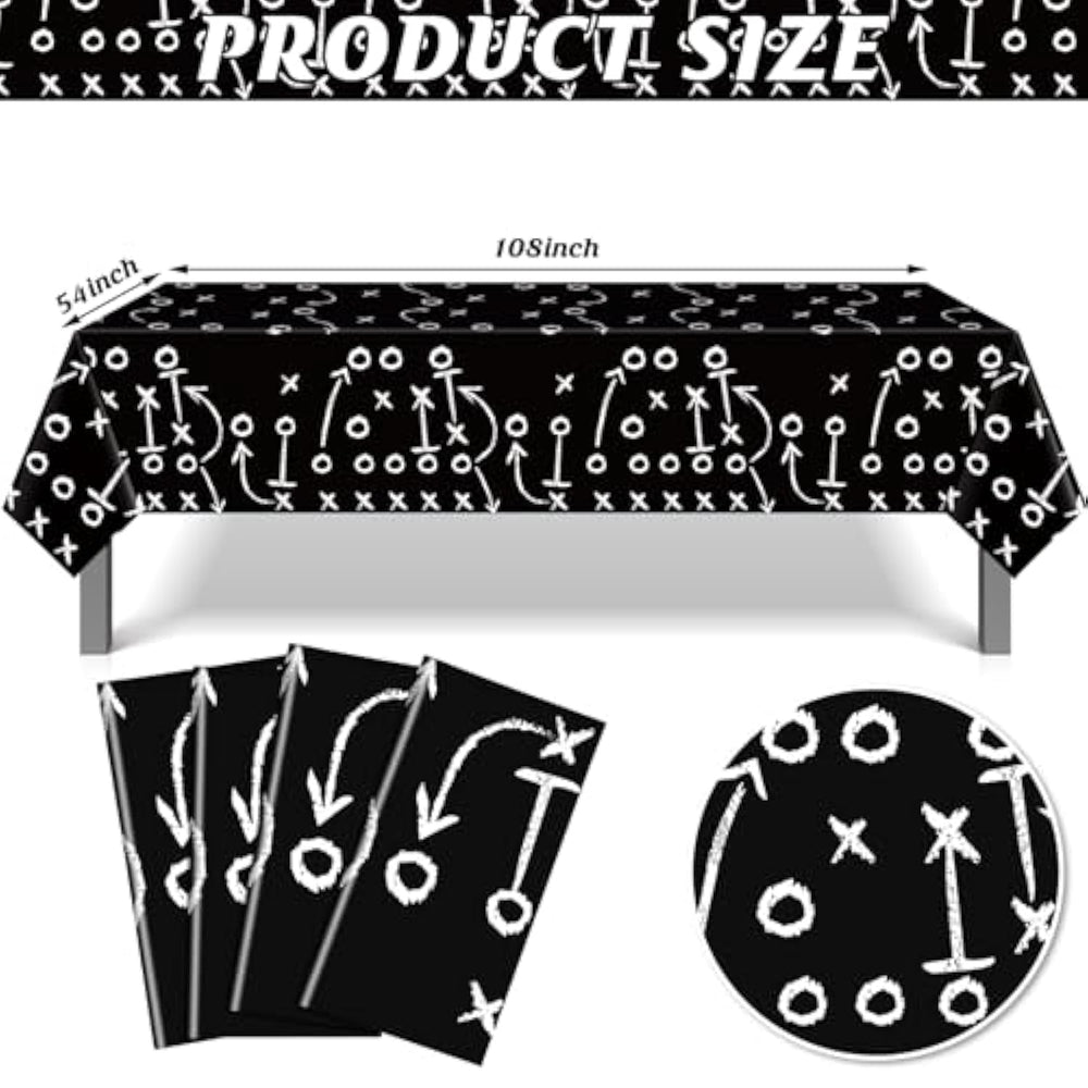| Pe Plastic | | What You Will Get: The Package Comes With 4 Pieces Of Football Tablecloths, Each Of Them Measures 274 X 137 Cm/ 8.99 X 4.49 Ft, Which Is Large Enough For Most Tables And All 4 Can Be Applied Together For Parties With Multiple People | | Realistic Pattern Design: Our Football Theme Tablecloths Are Designed With Football Tactical Guidance Pattern, It Looks Very Realistic And Can Be Applied For Diverse Parties And Events, Especially Suitable For Football Team And Sports Team Parties, And It Will Also Leave An Unforgettable Impression On Others | | Quality Material: The Disposable Football Tablecloth Is Made Of Reliable Pe Plastic; They Are Odorless, Safe For Your Guests Attending Parties; Also, It'S Waterproof, Preventing Tablecloth By Spilled Beverages | | Multiple Uses: These Football Themed Table Covers Can Not Be Applied For Decorating Your Table, But You Can Also Hang It On The Wall As A Backdrop Or Background For Photography Or Decoration, You Can Use Them To Take Some Beautiful Photos, Very Easy And Simple To Operate | | Easy To Clean: The Football Party Tablecloths Are Very Smooth And Flat, When The Party Is Over, You Only Need To Wipe With A Rag To Remove The Stains Or Just Throw It Away Directly, Which Not Only Saves Your Time, But Also Prevent The Tablecloth From Breaking, Just Enjoy Your Party To The Fullest | |
