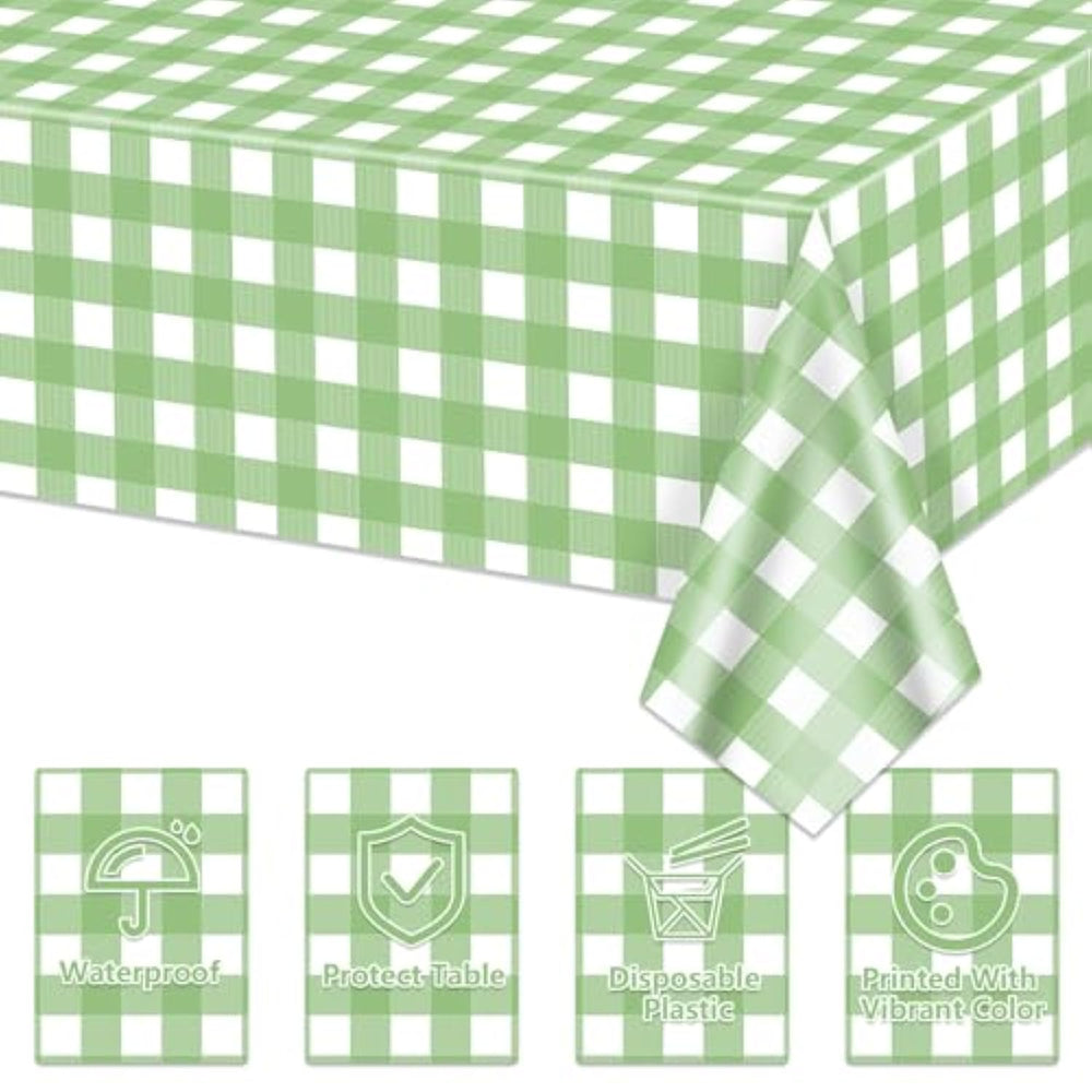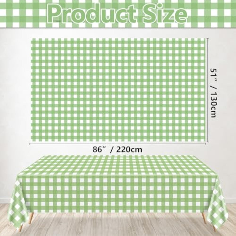 | Polyethylene (Pe) | | Value Pack: With 4Pcs Light Green And White Checkered Table Cover Included In Each Pack, Measuring 86.6X51.2"(220X130Cm), You'Ll Have Enough To Cover Multiple Tables Or Keep On Hand For Future Parties | | Premium Quality: Made Of High-Quality Pe Material, These Gingham Tablecloth Are Waterproof And Reusable, Perfect For Decorating Your Most Standard Picnic Tables And Sage Green Parties | | Light Green Tablecloth: Picnic Table Cover Designed With The Classic Checkered Theme, Hang Them Up On Doors Or Walls As Decorative Backdrops, It Could Also Be Given As A Gift To A Friend | | Versatile Occasions: Checkered Theme Tablecloths Are Suitable For Picnic Parties, Racing Party Decorations, Retro Parties, Family Dinners, Birthday Parties, Graduation Ceremonies, Wedding Reception, Farm-Themed Parties, Themed Events, Festivals, Summer Parties, Barbecue Parties, Other Holiday Parties, And Other Outdoor Events | | Save Your Time: These Light Green Gingham Tablecloth Are Spill-Proof And Stain-Resistant, Just Wipe Them Gently For Reuse Next Time, And After The Party, Simply Crumple The Tablecloth And Toss It In The Waste Bin, Spend Less Time Cleaning, And Spend More Time With Family Or Friends Enjoying The Party | |