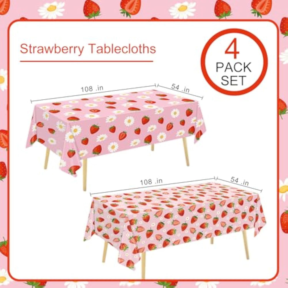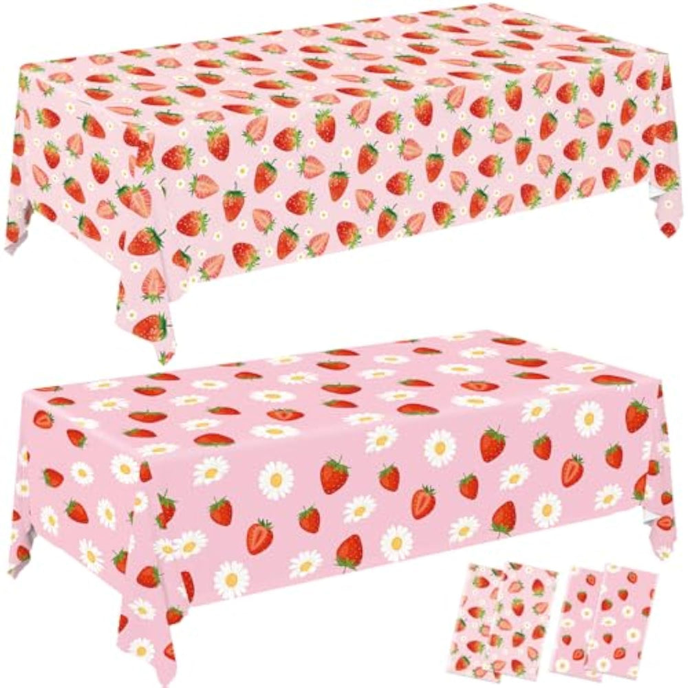 | Package Includes: A Pack Of 4 Strawberry Tablecloths, Each Measuring 54" X 108". A Sufficient Quantity Meets Your Usage And Replacement Needs. The Light Strawberry And Floral Design Brings A Fresh Feeling, Making It Suitable For Strawberry Shortcake Birthday Decorations, Showers, Baby Showers, Birthday Parties, Family Dinners, And More, Providing You With A Pleasant Dining Experience | | Strawberry Design: This Is A Strawberry Tablecloth With A Light Pink Background, Covered With Various Strawberry Patterns And Small White Flowers. The Strawberry Designs Include Both Whole Strawberries And Halved Strawberries, Featuring Vibrant Red And Green Colors That Look Very Lively And Cute. The Overall Design Is Very Cheerful And Sweet, Making It Perfect For Spring And Summer Gatherings Or Celebrations, Especially For Strawberry-Themed Parties | | High Quality Durable: This Berry Tablecloth Is Made Of High-Quality Plastic. It Is Soft, Lightweight, Durable, Resistant To Fading, And Foldable. It Is Not Easy To Damage And Helps Keep Stains Away. It Is Also Easier To Clean And Use Than Most Cotton And Paper Tablecloths. The Lightweight Design Makes It Easy To Use Both Indoors And Outdoors, Making It The Ideal Choice For Your Strawberry Shortcake Decorations | | Enjoy The Party And Save Time: The Strawberry Birthday Tablecloth Is Easy To Clean—Simply Wipe It Down, Or Dispose Of It After Your Party. This Disposable Table Cover Saves You Time On Cleaning, Allowing You To Spend More Time With Family And Friends And Less Time Tidying Up | | Wide Application: These Strawberry Party Tablecloths Can Be Used Not Only For Strawberry Shortcake Decorations, Strawberry Birthday Decorations, Picnics, And More, But Also To Complement Your Berry First Birthday Decor. They Can Be Paired With Strawberry Decorations Background Walls, Creating A Warm Atmosphere For An Unforgettable Berry Sweet Baby Shower Decorations And Leaving Lasting Memories | |