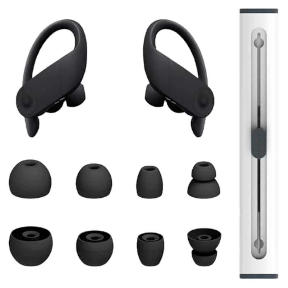 | The Replacement Ear Tips Fit For Prowerbeats Pro, Beats X, Urbeats, Beats Flex. Do Not Fit For Other Earbuds. Please Check Your Earbuds' Model Before Purchase! | | What You Get: 4 Pairs Silicone Tips(1 Pairs Large Size, 1 Pairs Medium Size, 1 Pairs Small Size And 1 Pairs Double Flange); Storage Box * 1, Cleaning Pen*1. | | Cleaning Pen: 3 In 1 Cleaner Kit With Flocking Sponge, Soft Brush And Metal Pen Tip, Double-Head Hidden Design. It Is Super Easy To Clean The Dust Or Stubborn Dirt. | | Precise Matching: Earbuds Replacement Eartips Fit Tightly, Does Not Affect Charging In The Charging Case. Replace Your Worn-Out Eartips. Give Your Earbuds A Brand New Look. | | Long Lasting Comfort: The Earbuds Replacement Eartips Are Made Of High Quality Silicone. Breathable And Comfortable And Anti-Slip. | |