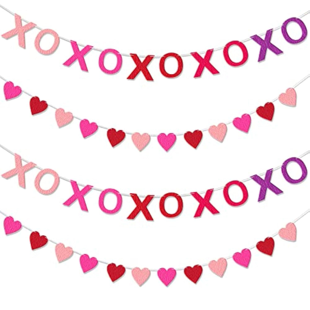 Felt | Package Includes: Come With 4 Pcs Of Valentine'S Day Xoxo Heart Banner, Beautify Your Interior With These Valentine'S Day Xoxo Heart Banners, Fill Many Rooms In Your Home With Love And Art, And Will Catch The Attention Of Everyone In Your Family, Let These Romantic Decorations Can Give You Unforgettable Memories | Add Color To The Valentine'S Day Party: Xoxo Heart Garland Valentines Day Banner Includes 2 Xoxo Banners And 2 Heart Banners, Mainly Using 5 Classic Valentine'S Day Colors, Simple But Elegant, To Express Your Lover On Meaningful Days, To Create A Strong Festive Atmosphere With Your Lover, Family And Children | Quality Material: Valentine'S Day Xoxo Heart Banner Is Made Of Quality Felt, Which Is Reliable, Not Easy To Deform Or Tear, And Will Not Fade Easily Over Time, Easy To Fold For Storage, Will Create A Cheerful Atmosphere For Valentine'S Day Party And Cheer Up Your Party | Easy To Decorate Romantic: 12 Felts Each String, About 3 Ft/ 1 Meter In Length, The Total Length Of The White Thread Is About 4.92 Ft/ 1.5 Meters In Length, The Thickness Is About 3 Mm, The Heart Size Is About 3.15 Inches/ 8 Cm In Length, The Size Of Xoxo Shape Is About 3.94 Inches/ 10 Cm In Length, And It Is Pre Assembled, Easy To Hang And Save You Time, You Can Hang It On Your Home, Mantel, Car, Dessert Table, Window, Tree, Buffet Table And More | Wide Application: Valentine'S Day Xoxo Heart Banner Is A Romantic Decoration For Valentine'S Day Party, Birthday Party, Wedding, Anniversary, Engagement Party Decoration, Etc., Nice Valentine'S Day Decorations For Valentine'S Day Party Photo Booth Backdrops, Valentine'S Day Decorations, Wall Decorations, Etc., Impressing You And Take Pictures With It |