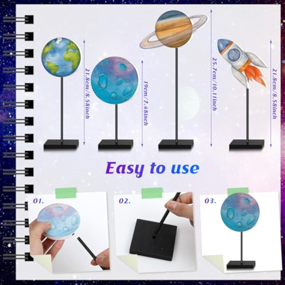 | You Will Receive: You Will Get 4 Pcs Of Outer Space Wooden Centerpieces, These Table Decorations Match Properly With The Decoration Of Space Themed Party; These Planets And Rocket Block Scheme Can Blend Seamlessly With Other Outer Space Decor Or Stand Out As Attractive Pieces On Their Own | | Quality Wooden Material: Made From Durable Wood, The Outer Space Home Table Decoration Ensures Long Lasting Use; These Decorations Are Sturdy Enough To Withstand Celebratory Festivities, Ensuring That The Planets Won'T Easily Fade, Chip Or Break, Making The Decorations An Ideal Investment | | Layered Display Size: The Size Of The These Planets And Rockets Rustic Wooden Block Vary From 1.77 X 3.94 Inches To 2.28 X 3.94 Inches; The Poles Range From About 4.72 Inches To 7.87 Inches, While The Bases Is About 2.36 X 2.36 Inches, Providing A Variety Of Options To Fit Your Specific Requirements, Adding Depth And Visual Interest To Your Table Arrangement | | Planets Shaped Design: The Tiered Tray Decor Features Appealing Planet And Rocket Shaped Design; Which Will Make Your Table Decorations Become More Eye Catching And Charming, Leaving A Deep Impression On Your Guest'S Mind | | Extensive Usage: The Wooden Planet Table Centerpieces Are Suitable As Decorations For Birthday Theme Parties, Outer Space Theme Parties, Galaxy Theme Parties, Solar System Theme Parties, Space Theme Baby Showers, Festival, Costume Parties And So On; They Will Also Be Ideal Gifts To Those Who Love Outer Space, Rockets, And Planets | |