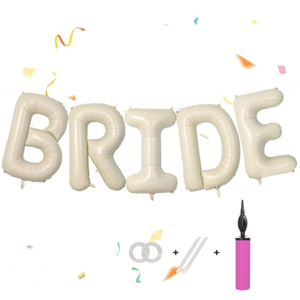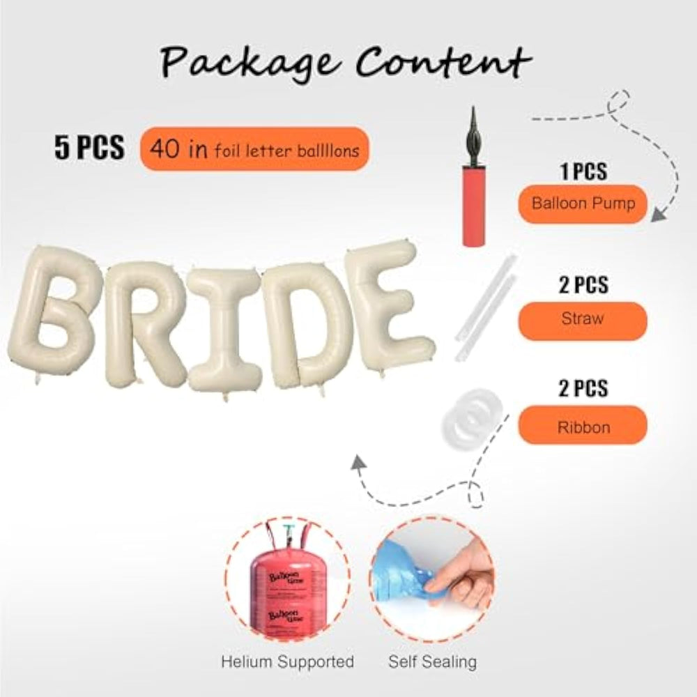 | You Will Receive: 40 Inch B+R+I+D+E Letter Balloons, 2 Hanging Ribbons, 1 Inflation Pump, 2 Straws, Perfect For Bachelorette Party Decorations, Bridal Showers, Weddings, And Engagements | | Easy To Inflate: This Product Is Equipped With An Air Pump, Which Makes Inflation Easier Than A Straw. It Can Be Inflated With Air Or Helium Gas. After Filling, Press The Valve Of The Balloon To Seal It | | High Quality Materials: Our 40 Inch Letter Balloons Are Made Of Nylon, Which Is Stronger Than Traditional Foil, Ensuring Durability And Long-Lasting Performance | | Bride To Be Decoration Kit Includes A Straw That Can Be Used To Deflate Foil Balloons. Simply Insert The Straw Into The Valve And Gently Press Until The Gas Is Completely Expelled. After Use, It Can Be Folded And Stored For Reuse | | Suitable For Various Occasions Such As Wedding Shower Decorations, Bachelorette Party Supplies, Themed Parties, Etc. Whether As A Party Decoration, Background Symbol, Stage Prop, Or As Part Of A Gift, The Large 40 Inch "Bride" Letters Can Create An Unforgettable Atmosphere, They Also Make The Perfect Photo Prop Or Backdrop | |