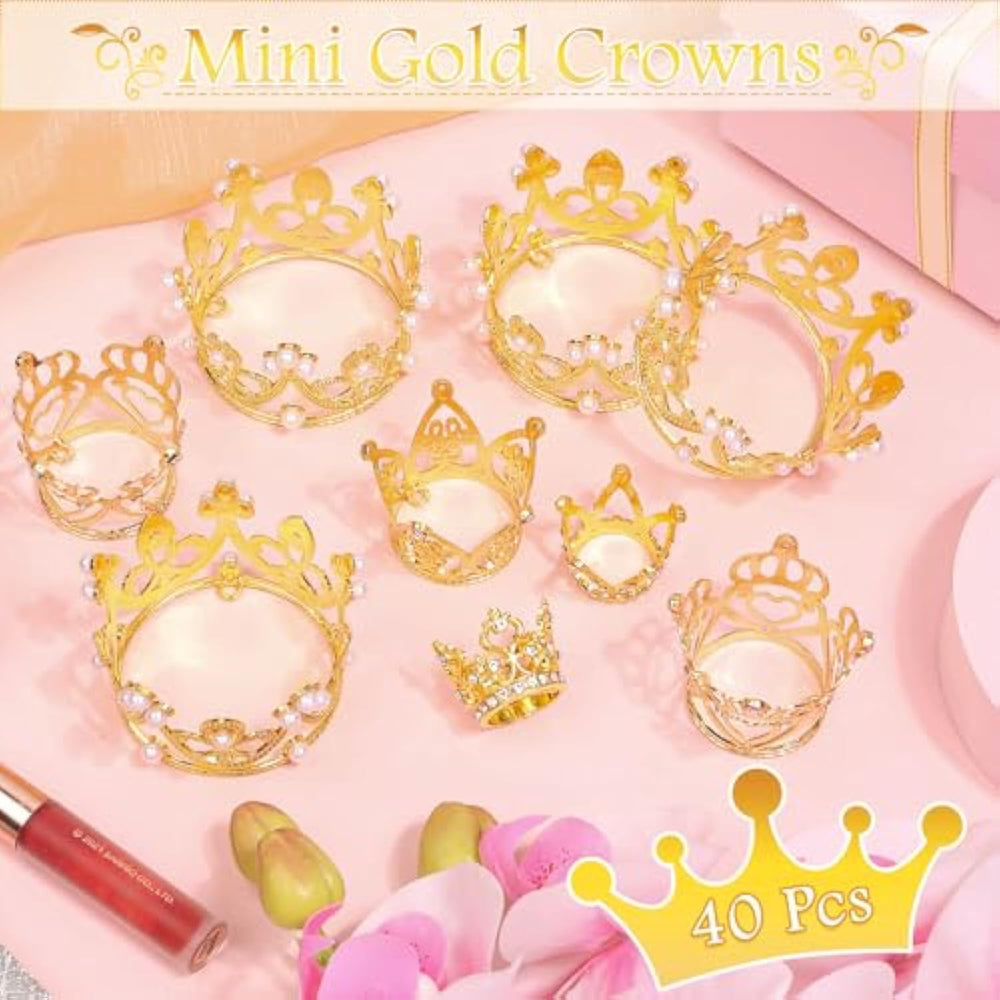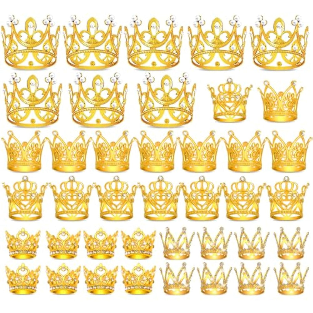 | Mini Crowns Bulk: Our Mini Crown Set Includes 40 Small Mini Crowns In 5 Different Styles. These Gold Crowns Offer Abundant Choices To Personalize Your Flower Bouquets And Cake Decorations. | | Various Styles: Available In 5 Different Styles, 8 Pieces For Each Style, These Small Crowns Are Designed To Meet The Needs Of Different Applications For Decorations. | | Exquisite: These Decorative Crowns Are Made Of Alloy, Sturdy Enough And Reusable. The Glittering Metal Base With Pearls And Rhinestones Looks Beautiful And Stylish. | | Multiple Uses: These Crowns For Flower Bouquets Are Ideal For Decorating Cakes At Weddings, Dances, And Parties To Add Beauty To The Cake. And The Little Crown Can Also Be Used As Hair Ornaments For Children, Dolls And Pets, Flower Arrangements, And Photography Prop Or Any Occasions You Want To Be More Charming. They Will Be Loved By Both Adults And Children. | | Suitable For Many Occasions: These Crown Decorations Are Suitable For Various Occasions, Such As Birthday, Baby Shower, Weddings, Graduation, Party, Cosplay, Photography Prop And So On. | |