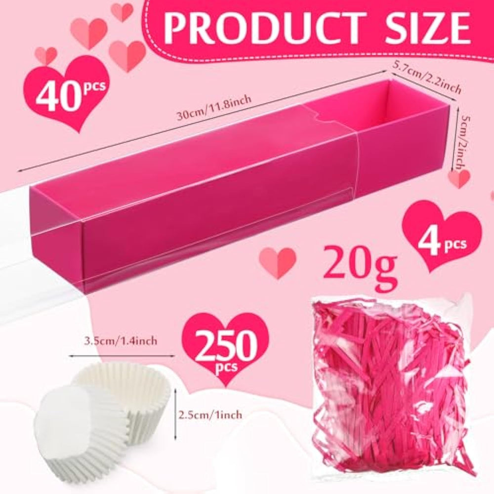 | Package Combination: You Will Receive 40 Pieces Of Cookies Boxes, The Size Is About 12 X 2.2 X 2 Inches, And You Will Also Receive 4 Packs Of Raffia, Each Bag Is 20G, And 250 Paper Trays, The Size Is About 1.38 X 0.98 Inches/ 3.5 X 2.5 Cm; The Accessories Are Complete, And The Quantity Is Sufficient, Which Is Very Convenient For You To Make Exquisite Strawberry Boxes | | Quality Material: These Strawberry Box Is Made Of Quality Cardboard, Sturdy And Durable, Each Box Has A Transparent Drawer, Made Of Pvc Material, Clear And Transparent Windows Provide Ideal Vision, Raffia Is Made Of Paper, Lightweight And Odorless, The Paper Tray Is Made Of Paper, Which Is Waterproof And Oilproof | | Transparent Drawer Design: These Bakery Boxes Have A Transparent Drawer, Which Are Very Suitable For Displaying Your Beautiful And Delicious Baked Goods, And They Are Easy To Take Out; It Is An Ideal Box For Chocolate Strawberries, Mini Donuts, Macarons, And Small Snacks, More Beautiful And Elegant | | Many Occasions: These Serving Trays Are Suitable For Many Events, Birthday Party, Wedding, Festival, Anniversary Celebration As A Creative Gift Idea For Guests; They Can Have Been Widely Applied In Christmas, Mother'S Day, Thanksgiving Day, Valentine'S Day, Halloween, Birthday Party, Wedding Reception, Graduation Party Favors | | Easy Assembly: These Cake Boxes Come In Flat And Pre Folded Form, Saving A Lot Of Time; Ensure Easy Storage And Take Up Less Space, Refer To Our Installation Instructions, It Is Very Convenient To Fold Up | |