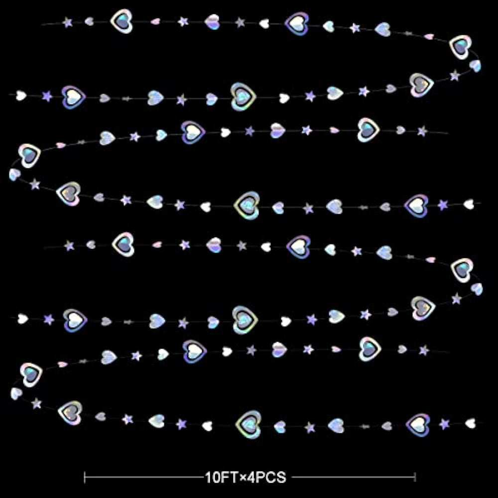 | Package Contains- 4 Packs Of 3D Hollow Out Iridescent Rainbow Star Heart Garland Streamer,Each String Is 10 Feet/ 3 Meters. | | Environmental Material-Our Blingbling 3D Star Heart Valentine Day Decorations Garland Kit Are Made Of Double Sided High-Quality Holographic Metallic Paper,Carefully Hand-Made And Machine-Sewn Together With Thread.Durable And Reusable.Pls Unroll Unwrap Garlands Carefully. Due To Delicate Nature Of Thread, May Tangle. | | Unique Design-3D Hollow Heart Design With Lovely Hearts And Twinkle Litter Star, The 3D Hollow Heart Will Automati