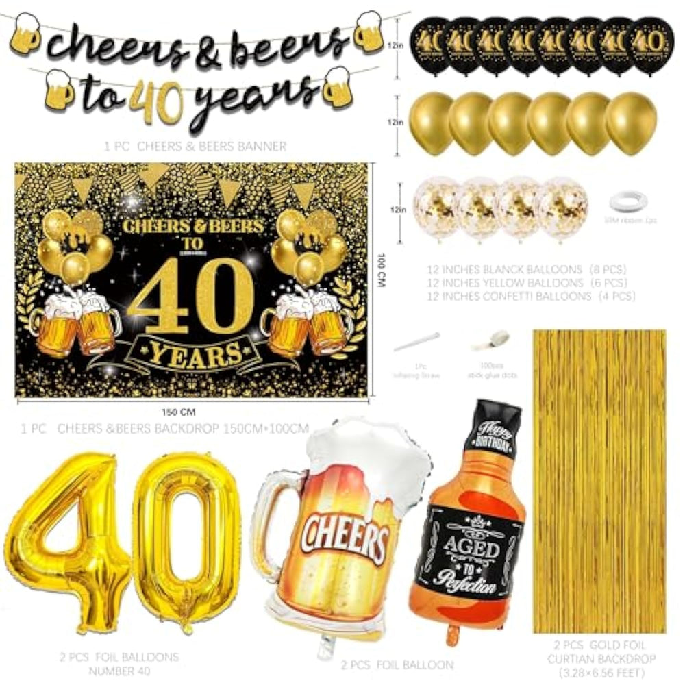 | ?? What You Get - Black And Gold Themed 40Th Birthday Decorations Including Black Gold 40Th Birthday Backdrop,40" Gold Balloons Of Number 40,18Pcs 12" Black And Gold Balloons,1 Pcs Cheers To 40 Years Banner,2Pcs Gold Fringe Curtain. The Birthday Party Decor, Will Definitely Bring More Joy To Your Party. | | ?? 40Th Birthday Backdrop - 40Th Birthday Banner Come With A Roll Of Rope Which Allow You To Pass The Rope Through The Four Corners Of The Banner. Then Hang It On The Tree, Wall And Anywhere You Want.This Party Backdrop Is A Great Addition For Birthday Theme Party, Amazing To Boost Atmosphere For Birthday Party Over, Your Birthday Party Will Be An Impressive Event | | ?? Cheers To 40 Years - Creative Cheer To 40Th Birthday Banner And Balloons In Simple But Gorgeous Black Gold Theme Make Your Party Brilliant And Unparalleled. Put On These 40Th Birthday Decorations On The Wall, Window, Garland Or Garden Which Appeals To Everyone. All Our 40Th Birthday Decorations For Him Are Made Of Premium Latex Or Foil To Ensure Safety And Durability,Which Won'T Easily Burst Or Leak. The Cheers To 40 Years Banner And The Fringe Curtain Can Be Used For Years To Come Against Shedding Or Fading. | | ?? Black Gold 40Th Birthday Decorations - Can Be Applied For Indoor Or Outdoor Events, Use Them To Create The Memorable Event And Boost A Happy Atmosphere For Your Friends And Family, Great Party Planning Solution To Many Meaningful Events.It'S Worth Preparing A Distinctive 40Th Birthday Party For Yourself Or Your Family. Also, Each 40Th Birthday Decorations Set Has Been Carefully Inspected To Ensure A Satisfactory 40Th Birthday Decoration For Her Or Him. | | ?? Unforgettable Party - Our 40Th Birthday Banner And Balloons Are Great Decorations For The 40Th-Anniversary Party. Black And Gold Party Decorations, It’S Perfect For Hanging On The Wall, Window, Yard Or Any Place You Want To Decorate. Suit For Indoor Party, Outdoor Party In Addition. It Can Also Be Used As A Party Tablecloth And A Backdrop For Photo Booths, Create A Chic Party Backdrop To Make Your Party More Attractive And Host An Unforgettable Birthday Party | |