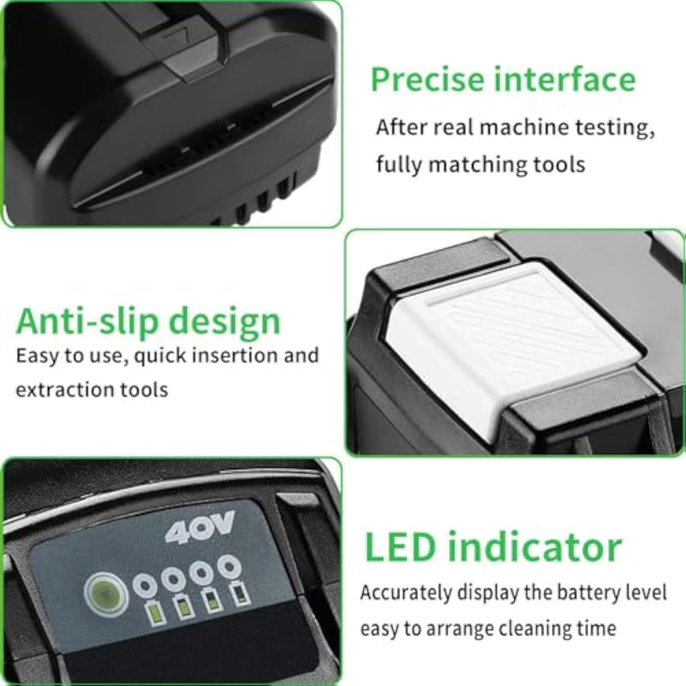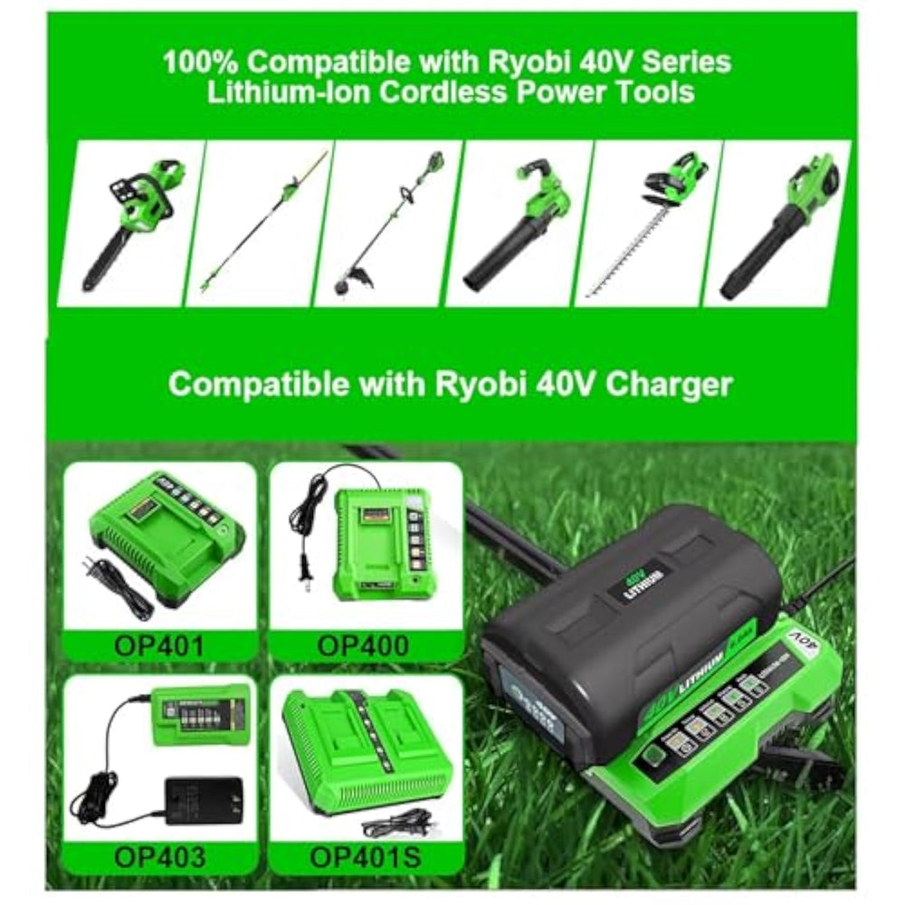?Specification? Battery Model : Op4040; Battery Type : Lithium-Ion; Voltage:40V;Capacity:6Ah;Size(L*W*H):6.5X3.85X3.0 Inches;Condition: 100% New From Manufacturer.Replacement For Ryobi 40V Battery | | ?Compatible Part Number?Op4050A, Op4015, Op4026, Op40201, Op40261, Op4030, Op40301, Op4040, Op40401, Op4050, Op40501, Op40601. 40V 6.0Ah Lithium Battery Replacement For All Ryobi 40-Volt Power Tools (Leaf Blower,Chainsaw,String Trimmer,Hedge Trimmer,Lawn Mower,Snow Blower), | | ?Compatible Models? Compatible With Ryobi 40V Lithium Cordless Power Tools: Ry40180, Ry40200, Ry40201A, Ry40202, Ry40204, Ry40400, Ry40402A, Ry40403, Ry40411, Ry40502A, Ry40511, Ry40601A,Etc.(Exclude Tools Model: Ry40002 Cordless String Trimmer) | | ?High Quality? 4 Smart Led Lights Allow You To Monitor The Battery Level And Charge It In Time. This Reminds You Of The Remaining Battery Power And Prevents Your Work From Being Interrupted By A Depleted Battery. Built-In Circuit Protection Ensures Bo.