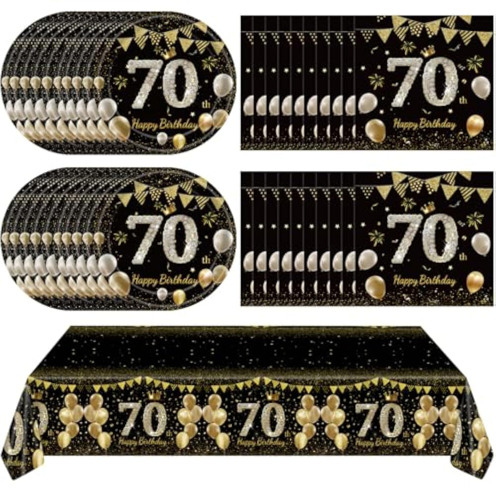 | ?Package Included?Our 70Th Birthday Decorations For Men Women Including 20 Pcs 70Th Birthday Plates, 20 Pcs 70Th Birthday Napkins, 1 Pieces 70Th Birthday Tablecloth. The Perfect Amount To Make Your Birthday Celebration Unforgettable! | | ?Official Happy Birthday 70Th Design?Black Gold Party Decorations Are Beautifully Designed. It Has An Elegant Balloons And Banner Background, With Eye-Catching "Happy 70Th Birthday" Words In The Middle, And Brilliant Diamonds Giving You A Sophisticated Visual Impression. 70 Birthday Boys Girls Decorations Will Make Your Party Full Of Warm And Happy Atmosphere | | ?Quality And Safety?All Our 70Th Birthday Decorations Black Rose Gold Plates, Napkins, Tablecloths And Birthday Decorations Are Made Of High-Quality Food-Grade Materials, Which Are Safe And Environmentally Friendly, No Odor. The Pattern Is Exquisite And Does Not Fade, The Best Choice For Your 13Th Birthday! | | ?Wide Application?70 Birthday Men Women Decorations Is The Perfect Addition To Your 70Th Themed Birthday Party Decorations. They Match Perfectly With Your Other Birthday Decorations For Family, Such As 70Th Birthday Balloons, Happy 70Th Birthday Banner, Rose Gold 70Th Birthday Decorations Hanging Swirls | | ?Save Your Time?No Wash Up! Save Your Time On Cleaning. You Just Need To Throw Paper Plates Into The Trash Can After The Party. You Can Spend More Time Playing With Your Friends, Kids, Families | |