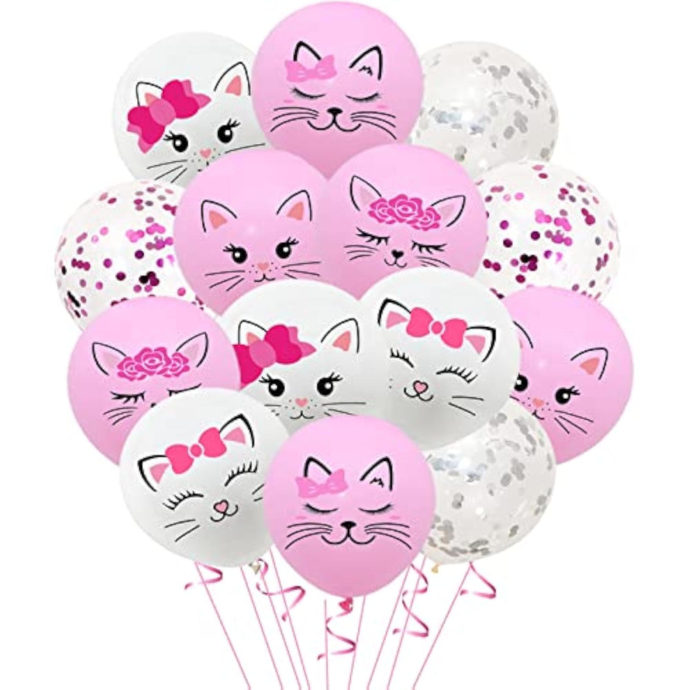 This set includes 42 kitty-themed balloons with five cute cat face designs and two confetti balloons in assorted colors. Made of durable latex, these balloons are safe, reliable, and can be filled with helium or air. To make confetti stick inside, rub the balloon on a dry surface for static. Perfect for cat-themed birthday parties and celebrations.