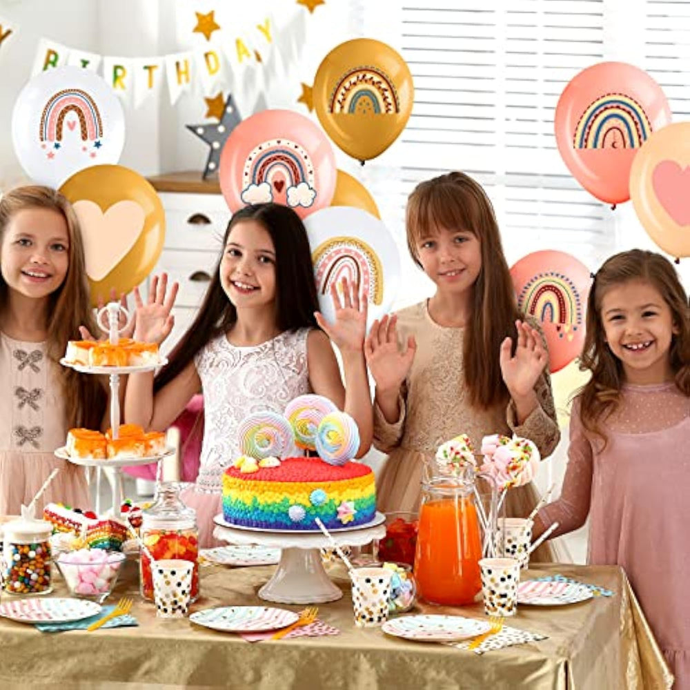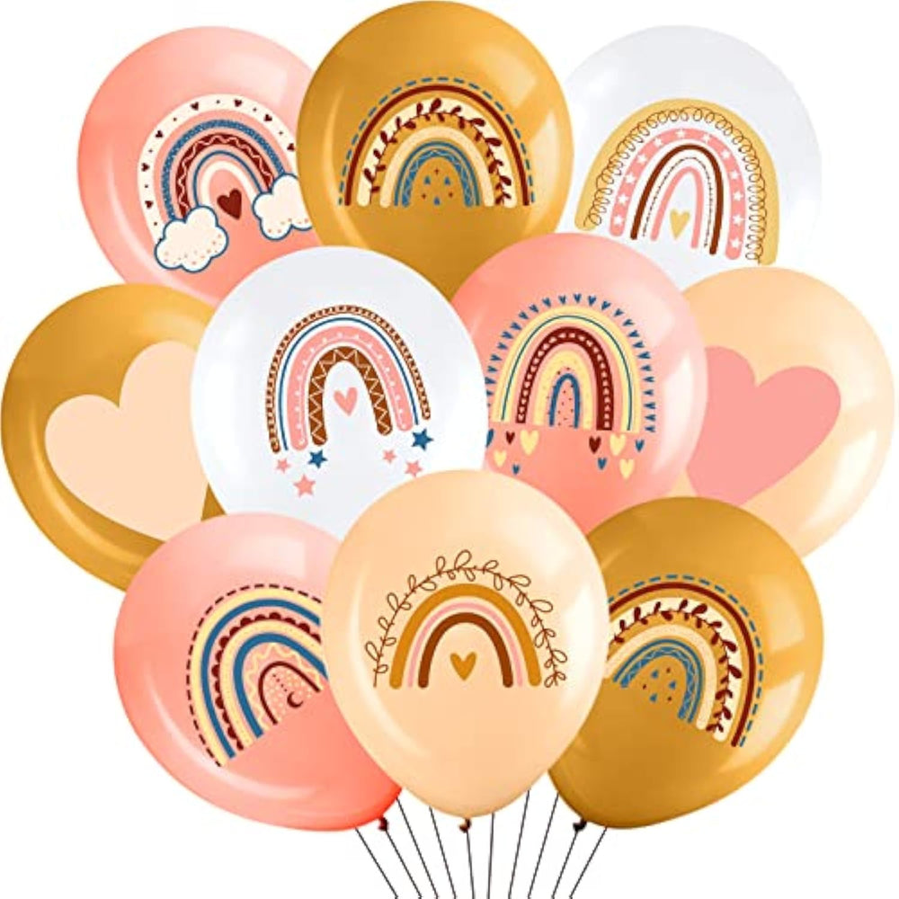 Exquisite Designs: You Will Receive 45 Pieces Boho Rainbow Balloons With Retro Color, These Balloons Are In 9 Different Styles, And Are Printed With Cute Elements, Such As Rainbow And Heart, Which Look Very Interesting And Beautiful | Reliable Materials: Rainbow Balloon Party Decorations Are Made Of Quality Latex, The Rainbow Party Supplies Won'T Explode In Your Face, The Thickened Colorful Balloons Are Hard To Burst, Safe And Reusable To Support Air And Helium, Not Easy To Break Or Fade | Size Information: The Size Of Each Graduation Party Balloon Is 12 Inches In Diameter, Large Enough To Stand Out, Nice Bohemian Rainbow Decorations Party Supplies, Suitable For Rainbow Party, They Can Bring You An Unforgettable And Pleasant Rainbow Theme Party | Ideal Party Decorations: The Boho Latex Balloons Are With Classic And Realistic Patterns, It Is A Good Idea To Create Unforgettable Rainbow Themed Party For Your Family And Friends, Creating A Memorable Party For Them, Which Should Be Added To Birthday Party Supplies, Helping To Add An Impressive Punch Of Color And Add Fun And Festive Atmosphere To The Party | Wide Range Of Occasions: It Is Convenient To Bundle These Assorted Latex Balloons And Hang Them On The Ceiling, Windows, Doors To Make A Decorative Effect; Suitable For Bohemian Party, Birthday Party Decorations, Boho Rainbow Theme Party Decorations, Bridal Shower, Nursery Decor Or Other Events |