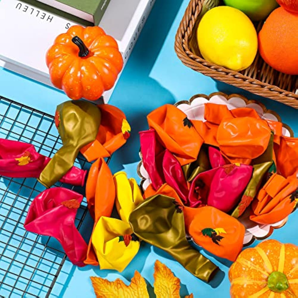 This set includes 45 fall-themed balloons in 9 styles with maple leaf prints, offering a creative touch for Thanksgiving and autumn celebrations. Made of thick latex, the balloons are safe, durable, and suitable for both kids and adults. Each balloon measures 12 inches and comes in warm autumn colors like orange, yellow, burgundy, and gold, creating a cozy seasonal atmosphere. Perfect for weddings, birthdays, baby showers, harvest festivals, or Thanksgiving parties, these balloons can be displayed indoors or outdoors to add festive charm to any event.