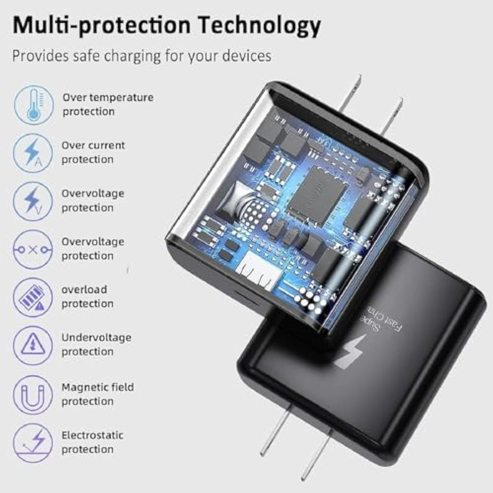 | ?45W Super Fast Charger Type C?This 45W Usb-C Charger Adopts Latest Pd/Pps Super Fast Charging Technology To Provide Compatible With Galaxy Series Devices With Maximum Power Of 45W. | | ?Universal Usb-C Wide Compatibility?45W Usb-C Super Fast Charging Block With 5Ft Usb-C To Usb-C Charger Cable Compatible For Galaxy S25 Ultra/S25/S25+,S24 Ultra/S24/S24+,S23/S23 Ultra/S23 Fe/S23+,S22/S22 Ultra/S22+,S21/S21 Ultra/S21 Fe/S21+,S20/S20 Ultra/S20 Fe/S20+,Note 20/Note 20 Ultra,Note 10/Note 10+,S10/S10+/S10E,S9/S9+,S8/S8+,Note 9,Note 8,Galaxy A13/A14/A54/A53/A52/A51/A50,Galaxy Z Flip5/Z Fold5,Z Flip4/Z Fold4,Z Flip3/Z Fold3,W24/W24 Flip,W23/W23 Flip,W22,W21,W20,Galaxy Tab A7/A8,Galaxy Tab S9/S8/S7/S6,Compatible For Google Pixel 8/Pixel 7/Pixel 6//Pixel 5/Pixel 4/Pixel 3/Pixel 2,Compatible Lg G8,Lg G7,Lg G6,Lg G5 And More Usb-C Devices. | | ?6Ft Usb-C To Usb-C Super Fast Charging Cable Cord?This Usb Type C To Type C Super Fast Charging Cable Features E-Mark Chip To Realize Max 5A Current, And It Also Functions As A High-Speed Data Transfer Cable That Supports Rates Up To 480Mbps. 5Ft Length Is Convenient For Usage While Charging And Syncing At Home/Office/Travel In Bed, Hotel Rooms, And More. | | ?Safety Efficient Super Fast Charging? This 45W Charger Owns A Built-In Multi-Protection System, Avoiding Over-Voltage, Over-Charge, Over-Heat, Etc. The Ul-Certified 45W Usb-C Wall Charger And 5Ft Usb-C To Usb-C Super Fast Charging Cable Matches The Current Required By The Device Automati
