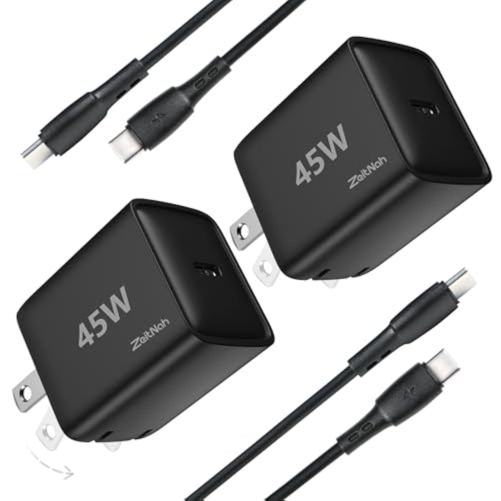 | ?45W Fast Charger 2.0?You Could Have Your Smart Phones Pretty Fast Charged. Even Though You Are In A Hurry To Go, You Could Have Your Phone Charged Up To 50% In 20-30 Minutes Which Depends On What Phone Is Charged Such As Galaxy, Iphone Or Others | | ?Foldable Plug Design?The 45W Type-C Charger Features A Foldable Plug, Making Them Easy To Carry And Store, Perfect For Travel Without Taking Up Extra Space | | ?Wide Compatibility?Compatible With All Usb Type-C Charging Devices, Including Ipads, Chromebooks, Iphone, Galaxy, Other Android Phones, And Other Usb-C Enabled Devices | | ?Safeguard Your Charging?Built-In Multiple Protection Systems, Including Overcurrent, Overvoltage, And Short Circuit Protection, Ensuring Safe And Stable Charging. Feel Confident Leaving Your Devices Charging Overnight On Your Nightstand | | ?Premium Quality Sleek Black Design?Made From High-Quality Materials, The Chargers And Cables Are Durable And Reliable, While The Sleek Black Design Offers A Modern And Stylish Look For Any Setting | | ?Efficient Charging Bundle?This Set Includes 2 X 45W Type-C Chargers And 2 X 1.5-Meter Type-C To Type-C Cables, Providing Fast And Reliable Charging For Your Devices | |