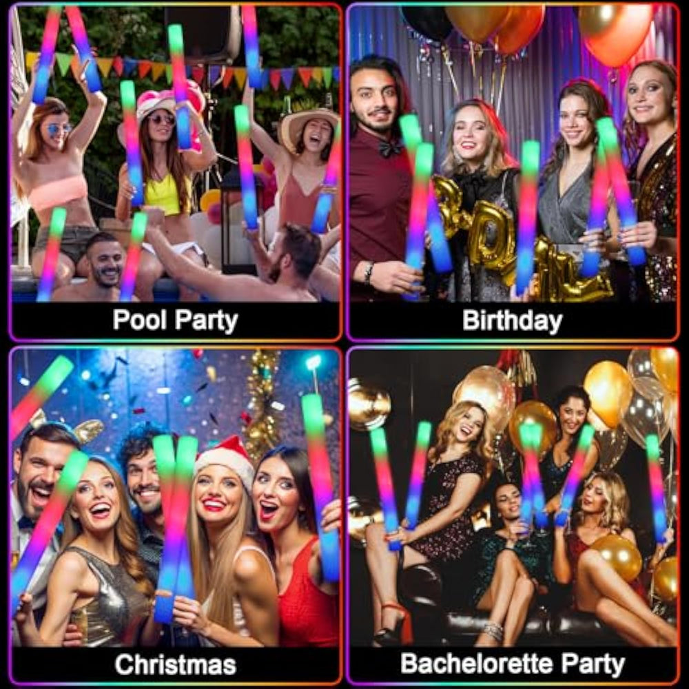 | Foam Glow Sticks: Our Foam Glow Sticks Are Larger In Size, They Feel Better In Hands Compared To The 12-Inch Glow Sticks From Other Brands. Our Giant Led Foam Glow Sticks Have Vibrant Colours, The Light Covers A Wider Range And Most Importantly, They Will Bring The Ultimate Experience To Your Halloween Party. | | Glow Party Supply: Press The Power Button To Switch Between The 3 Different Light Up Modes, Quick Flashing, Slow Flashing, And Alternately Flashing, Change The Mode You Like. Enjoy Foam Sticks With A Good Mood When Joining Party With Your Friends, Decorate Your Party With These Foam Glow Sticks That Will. Spice Up Your Glow Parties With These Foam Glow Sticks In The Dark Party Favors And Decorations Or Use As Giveaway Toys. Perfect For Christmas, Halloween, Birthday Parties, Weddings, Concerts, Bar, Sporting Events, Raves. | | Foam Glow Sticks Bulk: Perfectly Engineered Under Strict Quality Control, 46 Pcs Light Up Foam Sticks Are Made From Premium Materials To Ensure Led Foam Sticks Up To 8 Hours Of Glowing Light So That You Could Enjoy Your Party All Night Without Worrying They Would Fade Away. | | Customizable White Foam Surface: Our Glow Sticks Feature A White Foam Surface That You Can Write On Or Draw Anything You Like. You Can Also Wrap Black Duct Tape Around One End To Make Them Look Like Light Sabers. For Kids, They Are The Perfect Choice For Safe Swordplay. | | Happy Party: We Strive For A Premium Product And