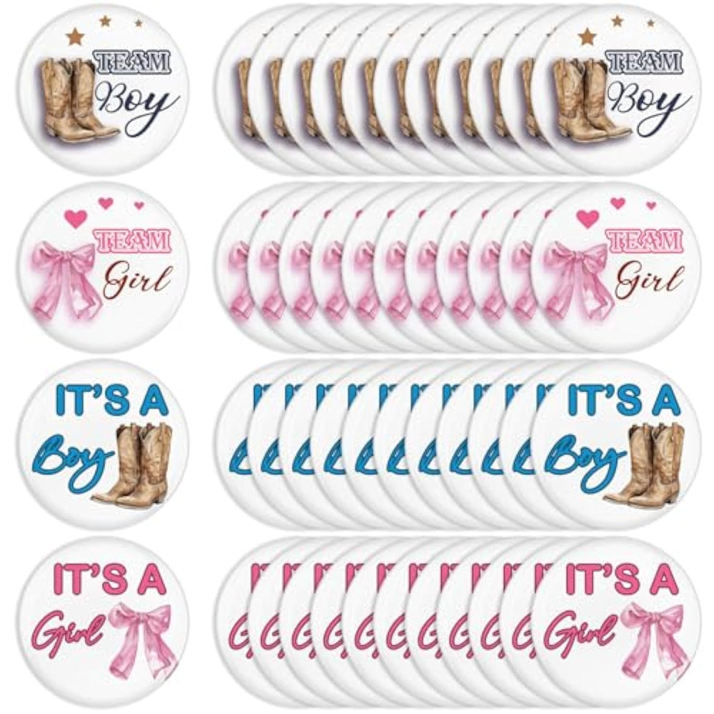 | Ample For Your Various Needs: The Gender Reveal Party Favor Set Includes A Total Of 48 Boy And Girl Gender Reveal Pins, Offering A Plethora Of Options With 4 Different Designs To Choose From, Ensuring That The Quantity And Variety Are Ample To Satisfy Your Usage And Sharing Requirements | | Compact Size For Effortless Storage And Portability: The Boy And Girl Team Pins, With A Diameter Of Approximately 4.4 Cm / 1.73 Inches, Are Compact And Portable, Making Them Easy To Store And Carry Without Occupying Too Much Space Or Causing Any Inconvenience | | Serve You For A Long Time: Crafted From Quality Metal, Our Boots And Bows Gender Reveal Pins Are Sturdy And Reliable, Resistant To Breaking Or Deformation; The Vibrantly Printed Graphics Are Fade Resistant, And The Lightweight Design Ensures They Won'T Impose A Burden When Worn | | Highlight Your Party: These Team Boy Or Girl Pins Feature Cool Boots And Elegant Bow Designs, With Stylish Fonts That Are Delicate, Cute, And Brightly Charming; They Add A Joyful Atmosphere To Your Gender Reveal Party, Making It Even More Memorable | | Versatile Uses For Added Fun: These Boot Or Bow Gender Reveal Button Pins Can Bring More Joy To Gender Reveal Parties And Baby Shower Events; Additionally, You Can Wear Them On Collars, Coats, Shirts, Jackets, And Bags, Making Them Easy To Pair With Other Accessories And Adding A Unique Touch To Your Outfit | |