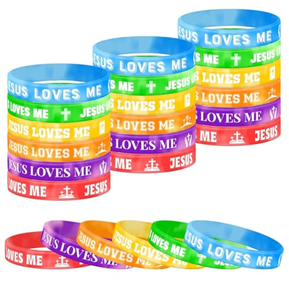 | ?Rich And Colorful Sets?You Will Receive 48 Jesus Loves Me Bracelets In 6 Styles,Each With 8 Pieces.Each Wristband Has A Vibrant Color Mixing And The Words' Jesus Loves Me '.Exquisite And Colorful, Variety Of Styles To Give You More Choices. | | ?Strengthen Your Faith?Our Christian Rubber Bracelets Are Printed With The Words [Jesus Loves Me] And Features A Cross Element,Adding A Religious Touch.The Eye Catching Colors And Inspiring Text Can Create A Vibrant And Appealing Visual, Gives A Positive Feeling That Can Inspire You And Others To Have A Faith In God And Spread The Gospel, Express Your Sincere Wishes.Different Colors And Styles Can Be Worn In Church Or Matched With Your Different Clothes. | | ?Widely Used?These Cross Silicone Bracelet Can Be Used In Multiple Occasions, Like Home,Birthdays, Christmas, Easter, Church Gatherings, Advent And Baptism Celebrations And So On, Which Will Make You Look Attractive In The People.These Bracelets Are Well Suited For Religious People.They Are Ideal For Easter Basket Filler, Christmas Party Favors, Church Keepsakes, Etc. | | ?Meaningful Gifts?The Jesus Bracelets For Kids Are Suitable For Prizes And Giveaways At Church Events, Or As A Thoughtful Reminder Of God'S Love In Various Settings,'Jesus Loves Me' Rubber Wristband Can Be Used As A Gifts For Family, Friends, Kids, Christians, Etc.And Can Also Be Applied As A Gifts For Outreach And Missionary Travel; It Provides Convenience For Sunday School And Bible Study.You Can Also Add Them To The Gifts Bag For Birthdays, Church Events Or Theme Gatherings. | | ?Size And Material?These Religious Silicone Wristband Are Mainly Made Of Quality Silicone Materials.It’S A Water Proof,Eco-Friendly Product,Soft To Touch,Which Are Stretchable.These Wristbands Have The Same Size,2.56 Inch/6.5Cm In Diameter,0.5 Inch/1.2Cm In Width