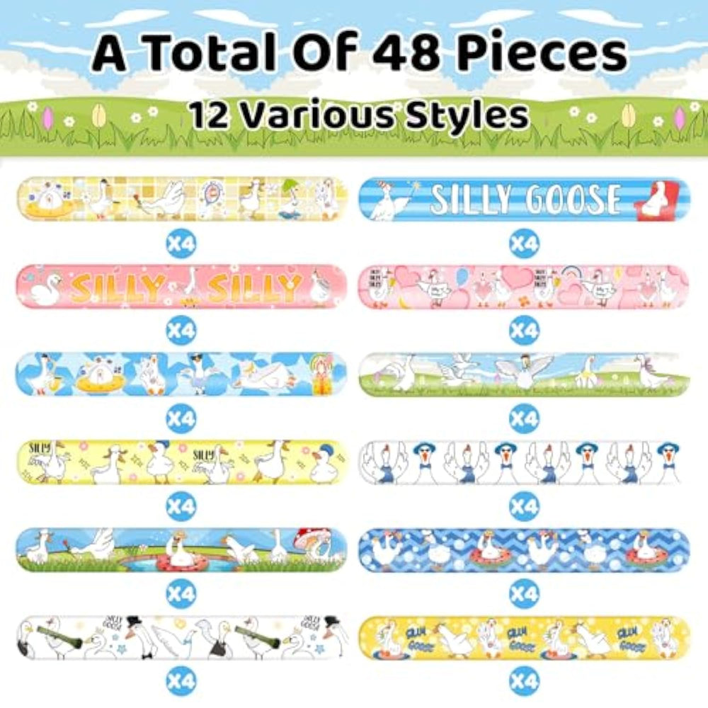 | Silly Goose Party Favors: You Will Receive 48 Pieces Silly Goose Slap Bracelets In 12 Styles, 4 Pieces Of Each Style; The Size Of Silly Goose Bracelets Is About 3 X 22 Cm/ 1.2 X 8.7 Inches, The Wristband Is Printed With Multiple Patterns. Rich Styles Can Satisfy Most Boys And Girls' Preference | | Unique And Novel Design: These Silly Goose Party Decorations Design With Various Funny Silly Goose Patterns That Have Different Facial Expressions And Bright Colors, With Cute Posture, Looking Lovely And Lively, Suitable For Kids And Adults. The Silly Goose Party Supplies Adopt Fun And Vibrant Cartoon Style, Which Will Be Sure To Captivate Children'S Hearts And Be Surprise Silly Goose Gifts For Yourself, Friends, Children, And Students | | Reliable Material: These Silly Goose Birthday Decorations Are Made Of Premium Pvc, Last Long, And They Have No Odor, No Harm For Your Kids.The Edge Of The Plastic Jacket Is Completely Sealed | | Silly Goose Birthday Party Decorations: Whether It'S A Birthday Party Or A Silly Goose Party, These Fun And Cute Goose Decorations Are Sure To Bring Cheers And Joy To Everyone Involved, The Vivid And Vigorous Silly Goose Add Enjoyment To You, They Will Be Sure To Stand Out At Parties And Become Great Silly Goose Gifts For Your Party | | Widely Application: Fun Silly Goose Bracelets Are Perfect Decorations For Silly Goose Party, Silly Goose Birthday Party, Silly Goose Party Game, Silly Goose Birthday Decorations, One Silly Goose Birthday Decor, Animals Party, Silly Goose Baby Shower Decorations, Family Gathering, Children'S Day Giveaway, Goodie Bag Fillers, Classroom Rewards And More, Also Very Attractive For Daily Use, Lovely Accessories For Silly Goose Lovers | |