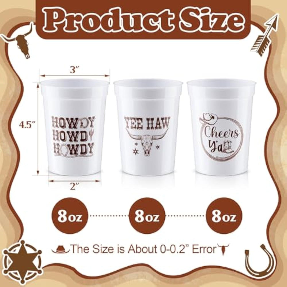 | Rich Set: You Will Receive 48 Pieces Of Western Plastic Cups, 3 Styles, 12 Pieces Each, The Set Is Rich In Quantity, Which Can Meet Your Needs For Supplies In The Western Theme Party | | Product Size: The Size Of Cowboy Plastic Cups Is: 4.5 Inches, 8 Ounces; The Cup Has A Suitable Capacity And Can Hold Liquids Well To Meet Your Drinking Needs At The Party | | Product Material: This Western Cowboy Disposable Cups Are Made Of And Safe Plastic Material, With Clear Patterns Printed On The Surface; The Material Is Safe And Not Easy To Break | | Interesting Design: These Western Proverbs Disposable Plastic Cups Contain 3 Classic Cowboy Proverbs, Which Are Classic And Beautiful; They Are A Match For Western Party Activities And Will Surely Fill Your Desktop With Atmosphere | | Application Scenarios: The Vintage Cowboy Drinking Cups Set Can Be Applied In Western Theme Activities, Cowboy Parties, Festival Celebrations, Outdoor Parties And Other Scenarios; It Has A Wide Range Of Usage Scenarios And Is Also A Holiday Gift | |