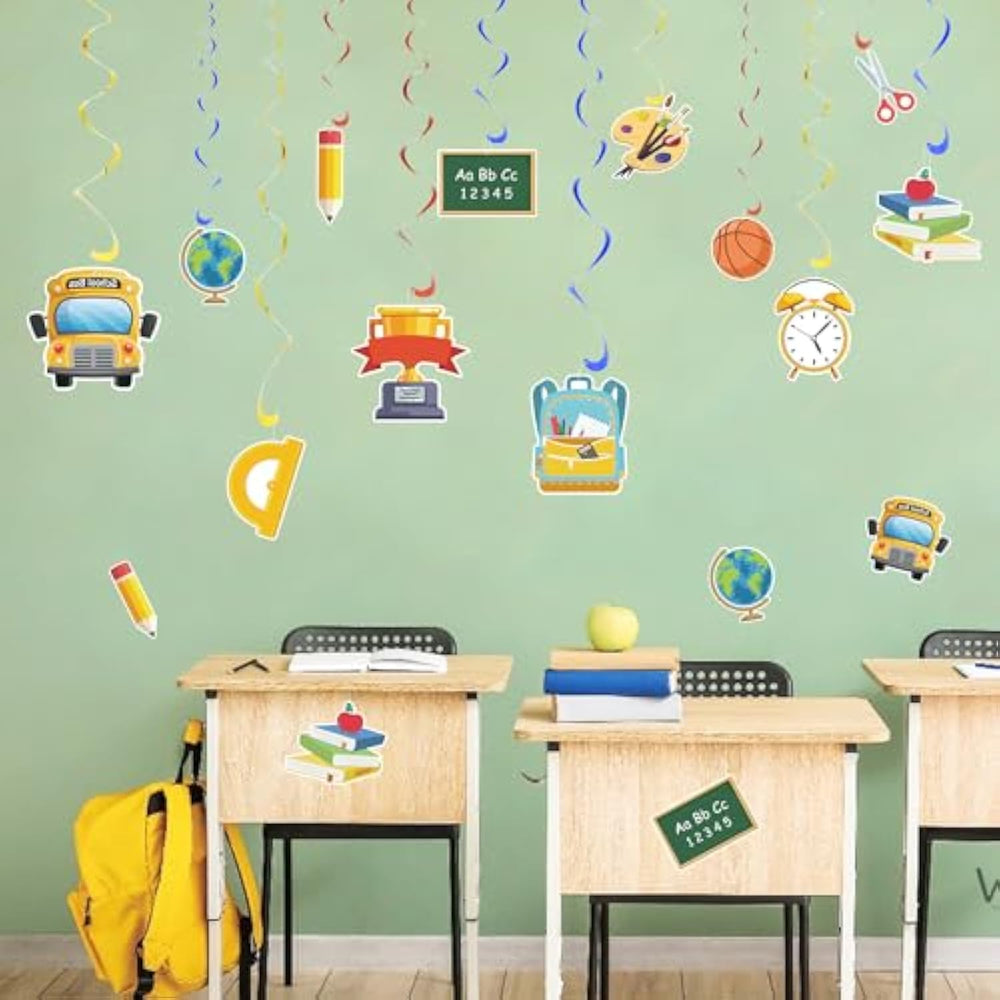 | Package Includes - 24Pcs Cutouts And 24Pcs Hanging Swirls Are Included. We Have 12 Patterns Of Cutouts And 2Pcs For Each To Add A Colorful Touch To Your Back To School Party Decorations. | | Assembly Required - The Ceiling Decorations Needs To Be Assembled By Yourself, But It'S Very Simple. All You Need To Do Is Attach The Cutouts And Swirls Using The Accessories We Provide! | | Back To School Theme - The Classic Designs Make The Classroom Ceiling Decorations Perfect For Any Back To School Or 1St Day Of School Themed Activity, Whether It'S Kindergarten, High School, Preschool Or College. | | Vibrant Vivid - Clear Printing Technology Makes Our Back To School Party Supplies Look More Vibrant And Less Likely To Fade And Suitable For Extended Use. | | Double Side Printing - The Hanging Decorations For Classroom Is Double Side Printing To Make The Event More Elegant, It Can Be Used To Decorate Your Office, Home, Classroom Or Used As Wall Decal, Photo Props And Bulletin Board Decoration. | |