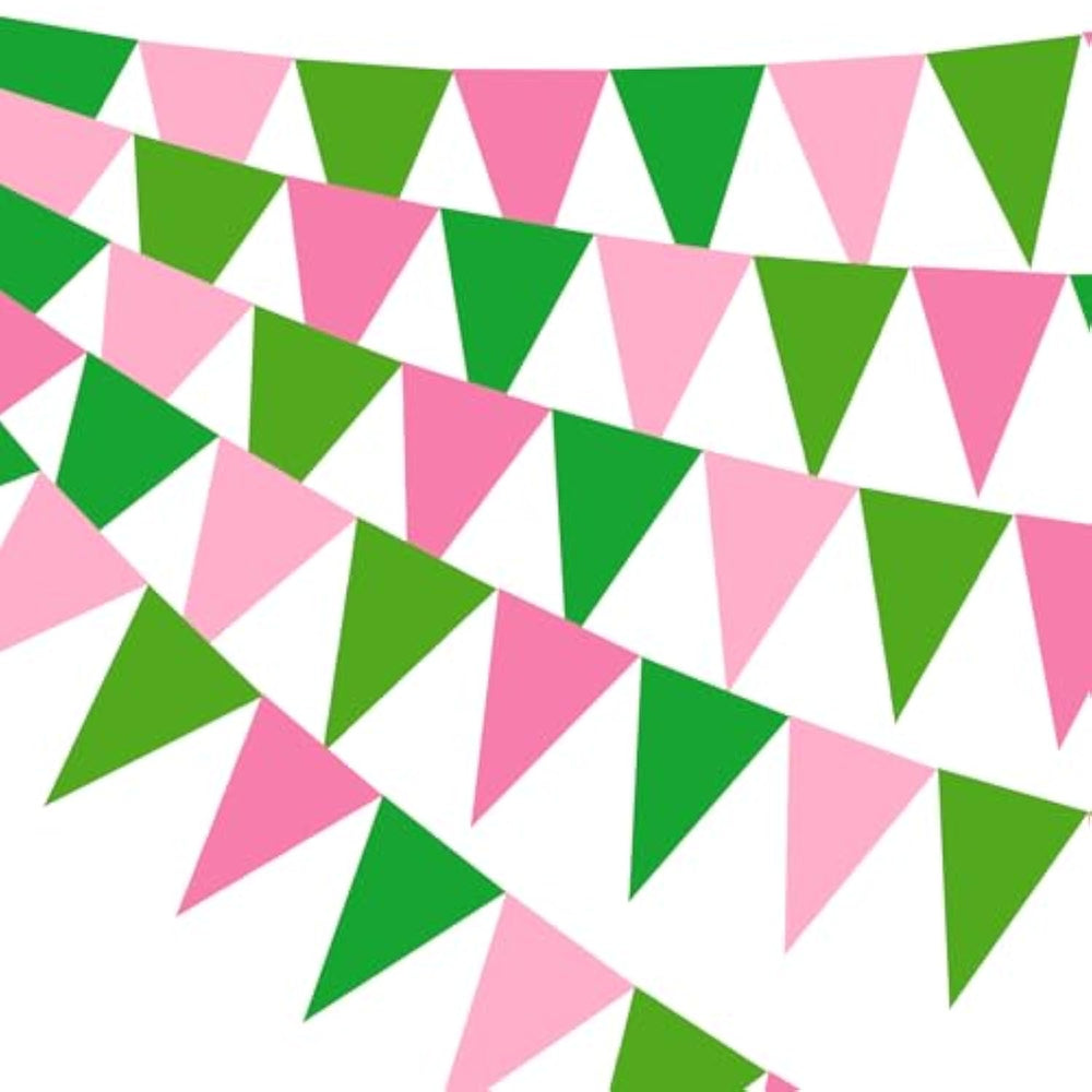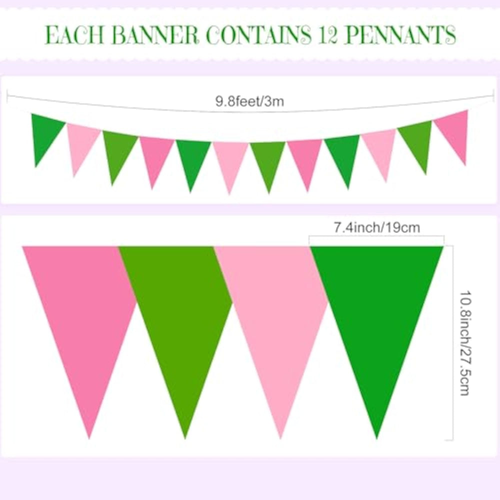 | Pink And Green Party Decorations: The Package Included 5 Pieces Pink And Green Pennant Banners, Each Of The Banners Have 12 Triangle Flags. That Will Provide Enough Banners To Decorate Your Entire Event Space. You Can Order More Quantity According Your Party Need | | Quality Material: These Pink And Green Pennant Banner Flags Are Constructed Using Quality Fabric, Designed To Hold Up Against Regular Usage. These String Triangle Flags Won'T Tear Or Fray, Making Them Excellent For Your Every Party Decoration Need | | Suitable Size: The Length Of These Pink And Green String Triangle Flags Is About 9.84 Ft / 300Cm For Each. The Total Length Is About 49.21 Ft / 15 M. You Can Use Them To Decorate Your Wall, Door, Window, Ceiling And So On | | Versatile Usage: With Their Eye-Catching Design And Vibrant Colors, These Pink And Green Triangle Banners Are A Fantastic Choice For Various Events. Suitable For Pink And Green Party, Retirement Party, Birthday Party, Halloween Party, Wedding, Outdoor Events And More | | Distinctive Features: These Pennant Banner Flags Boast A Nice Design, Ensuring Your Event'S Decor Stands Out From The Crowd. Featuring A Delightful Blend Of Pink And Green Tones That Is Sure To Complement Any Birthday Party Ensemble, These Colorful Triangle Flags Will Make Your Celebration Truly Remarkable | |