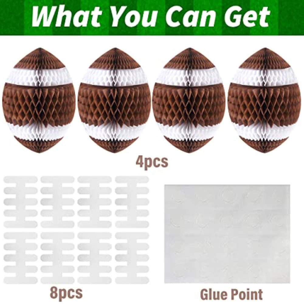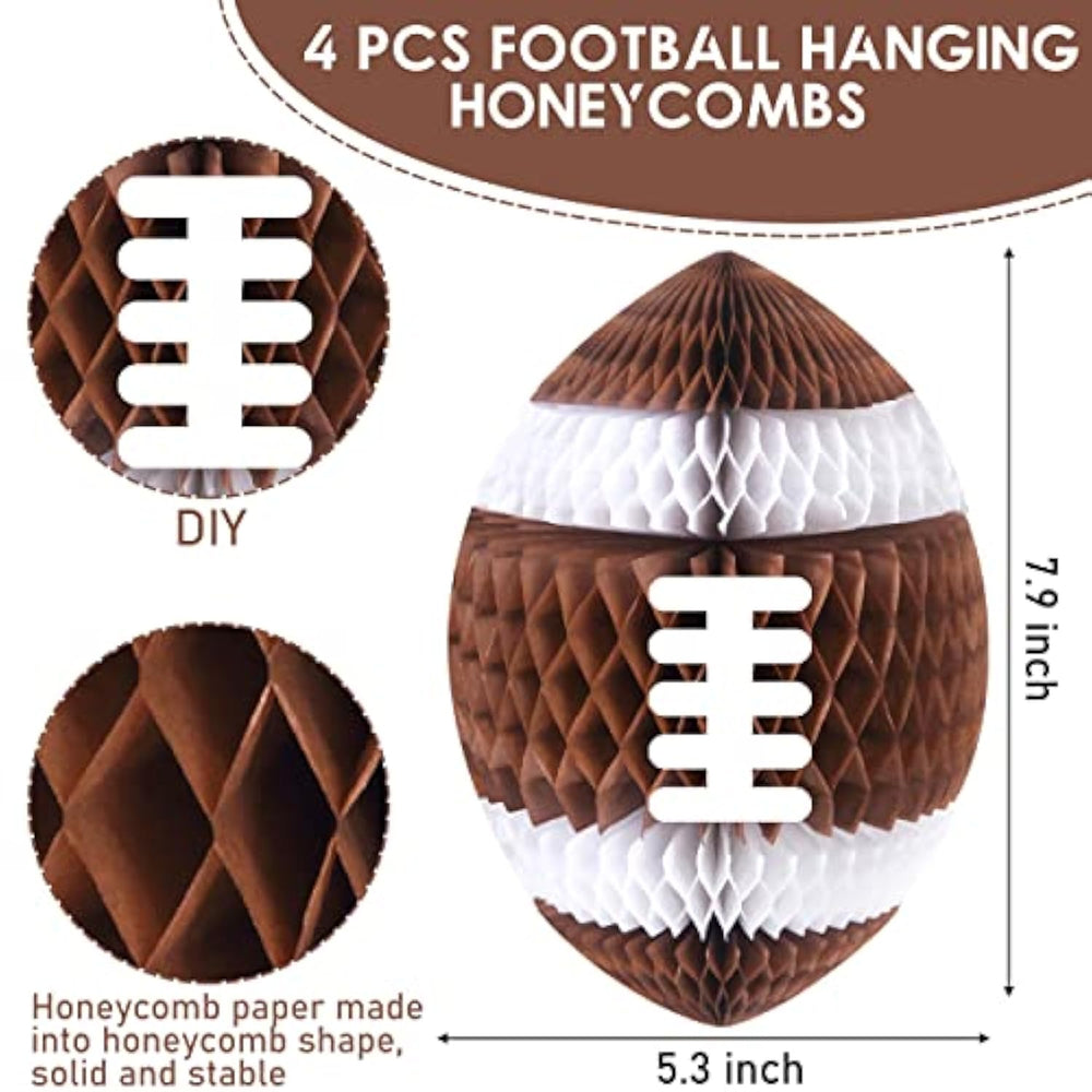 | ?Eye-Catching Football Honeycomb Decoration?Package Includes 4 Pcs 3D Football Honeycombs With Looped Hanging String. These Honeycombs Can Attract More Attention, Whether It Is Kids Teens, Or Adults, It Can Make Everyone Have A Particularly Memorable Football Party | | ?Premium Sports Birthday Party Supplies For Boys? The Football Honeycomb Is Made Of Quality Tissue Paper, Which Is Lightweight But Thick And Sturdy Enough, Not Easy To Tear Or Creased, Can Be Use For A Long Time. | | ?Unique Design For Football Baby Shower Decorations?The 3D Effect Design Perfectly Match With The Football Theme, Adding More Festive Atmosphere. Super Nice Decor For Football Theme Parties, Baby Showers, Kids Baby Birthdays, Sports Game Day Or Other Happy Events. | | ?Assemble Required Football Party Supplies?Assembly Is Required. Simply Open The Football Honeycomb Paper And Attach The White Paper Cards With Double Sided Tape To Create A Ball, Then You Can Decorate It On The Stand, Or You Can Hang The Honeycomb Separately For Decoration. | | ?After-Sales Service For Sport Theme Decorations?Buy With Confidence! We Value Every