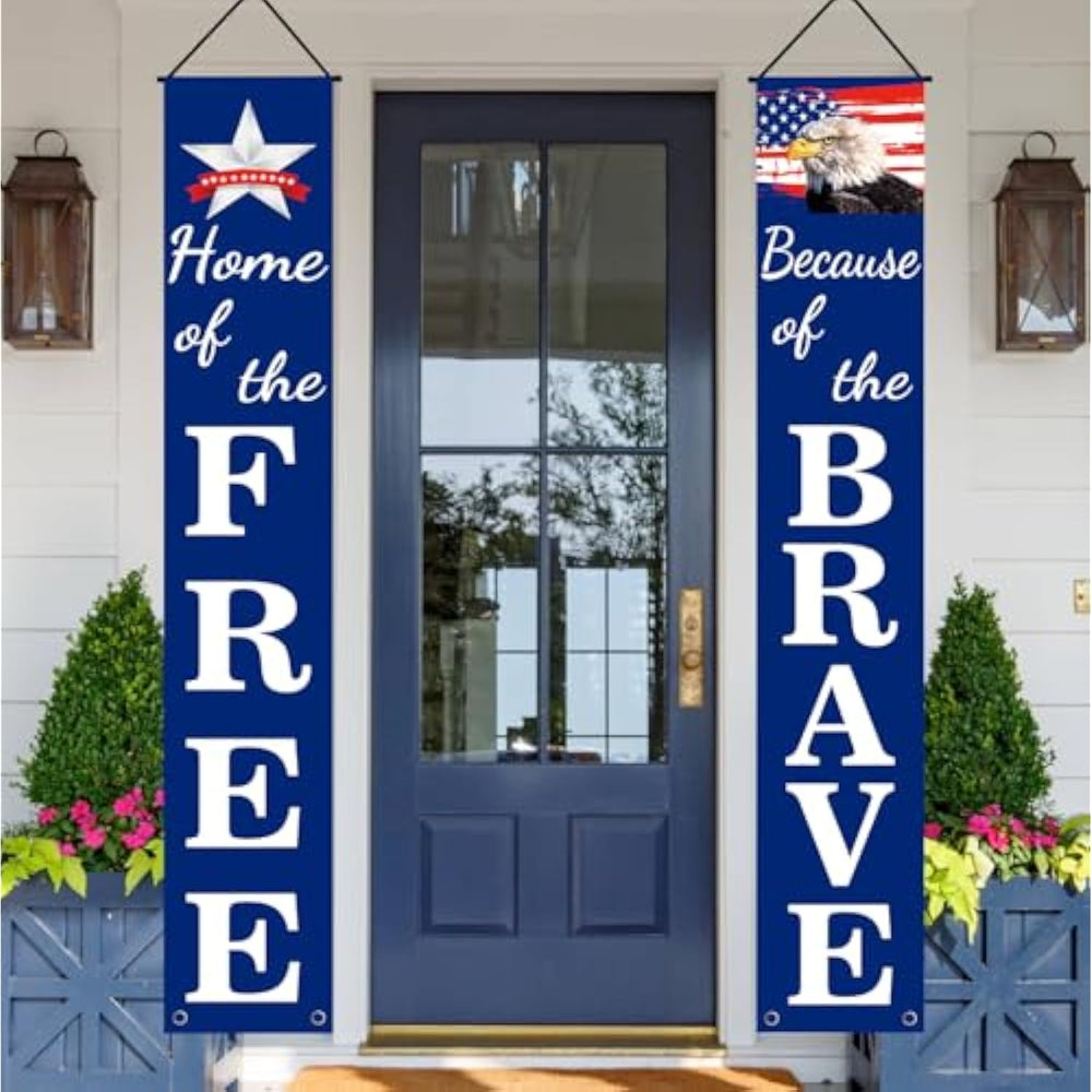 | Patriotic Decorations: Full Of Classic Patriotic Elements, Add A Fun Touch To Your Party, Suitable For Patriotic Event, 4Th Of July, Military Homecoming, Flag Day, Memorial Day, Veterans Day, Labor Day, Armed Forces Day, Etc. | | Easy To Use And Store: Patriotic Banner Is Made Of High Quality Fabric, Easy To Hang And Store, And Sturdy Enough For The Next Use. Weather-Resistant, Ideal For Outdoor Or Indoor Decorations. | | 4Th Of July Decorations: Easy But Festive Fourth Of July Decorations. Well Designed, Pre-Assembled To Decorate Front Door, Porch, Fireplace, Garage, Patio, Home, Office, Indoor And Outdoor Easily. | | Decent Size: Each Banner Measures 72"X12", A Big Size To Eye-Catching. There Are 2 Grommet Holes At The Bottom To Better Secure Them From The Wind, Just Hang Them Anywhere You Like. | | Service : Perfect For The Memorial Day Or Other Patriotic Decorations, And Wonderful Gifts For Friends And Family. We Offer A Risk-Free Satisfaction , If Have Any Questions, Please Feel Free To