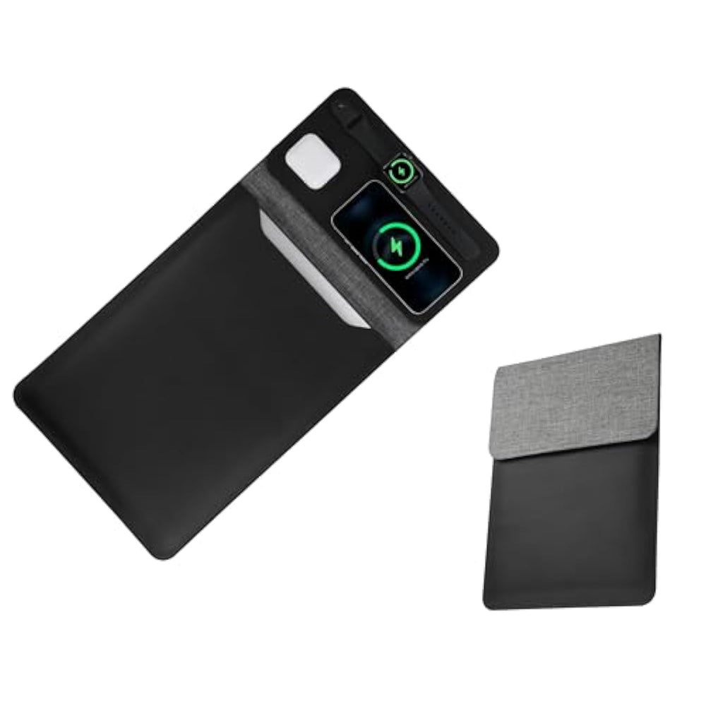 | All-In-One Design – The 5-In-1 Wireless Charging Laptop Sleeve Combines A Protective Laptop Bag, Desk Mat, Mouse Pad, And 3-In-1 Manetic Wireless Charger-(Compatible For Iphone/Airpods/Apple Watch) In One Sleek, Space-Saving Accessory. | | Fast Qi Wireless Charging – Built-In Qi-Protocol Wireless Charging Pad Powers Up Your Multi-Devices Quickly While You Work. 15W Fast Charge For Iphone 5W For Airpods,2.5Wfor Iwatch. "No Messy Cables—Just Place Go!" (Requires 20W+ Pd Charger, Not Included). | | Premium Protection Durable Protection – Scratch-Resistant Vegan Leather With Water-Repellent And Shock-Absorbent Interior For Macbook/Ipad Safety. | | Perfect Fit For 11-14" Laptops/Tablets – Snugly Fits Macbook Pro 13/14", Air 13", Ipad Pro 12.9" With Secure Magnetic Closure. | | Works As A Office Desk Organizer – Doubles As A Non-Slip Desk Mat And Smooth Mouse Pad,Portable Charging Station Keeping Your Workspace Clutter-Free. The Slim, Portable Design Makes It Ideal For Home, Office, Or Travel. Ideal For Corporate Gift ,Dads, Professionals, And It Teams | |