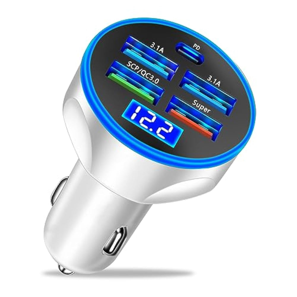 | ?Super Fast Car Charger?: There Are Four Usb 3.1A Ports And One Type C Port With This Car Charger, And One Of The Orange Usb Charging Ports Supports Super Fast Charging To Keep Your Electronic Devices Fully Charged While Driving So You Can Enjoy A Pleasant Journey With Your Family And Friends. | | ?5 In 1 Usb Car Charger?: The 5-Port Car Charger Can Charge Up To 5 Electronic Devices At The Same Time, Charging Far More Efficiently Than The Original Charger. It Is Designed For Fast Cell Phone Charging With 250W Of Power, Making It The Ideal Car Charger For Multiple Simultaneous Charges. | | ?Led Voltmeter?: There Is An Led Display Attached To The Car Charger That Automati