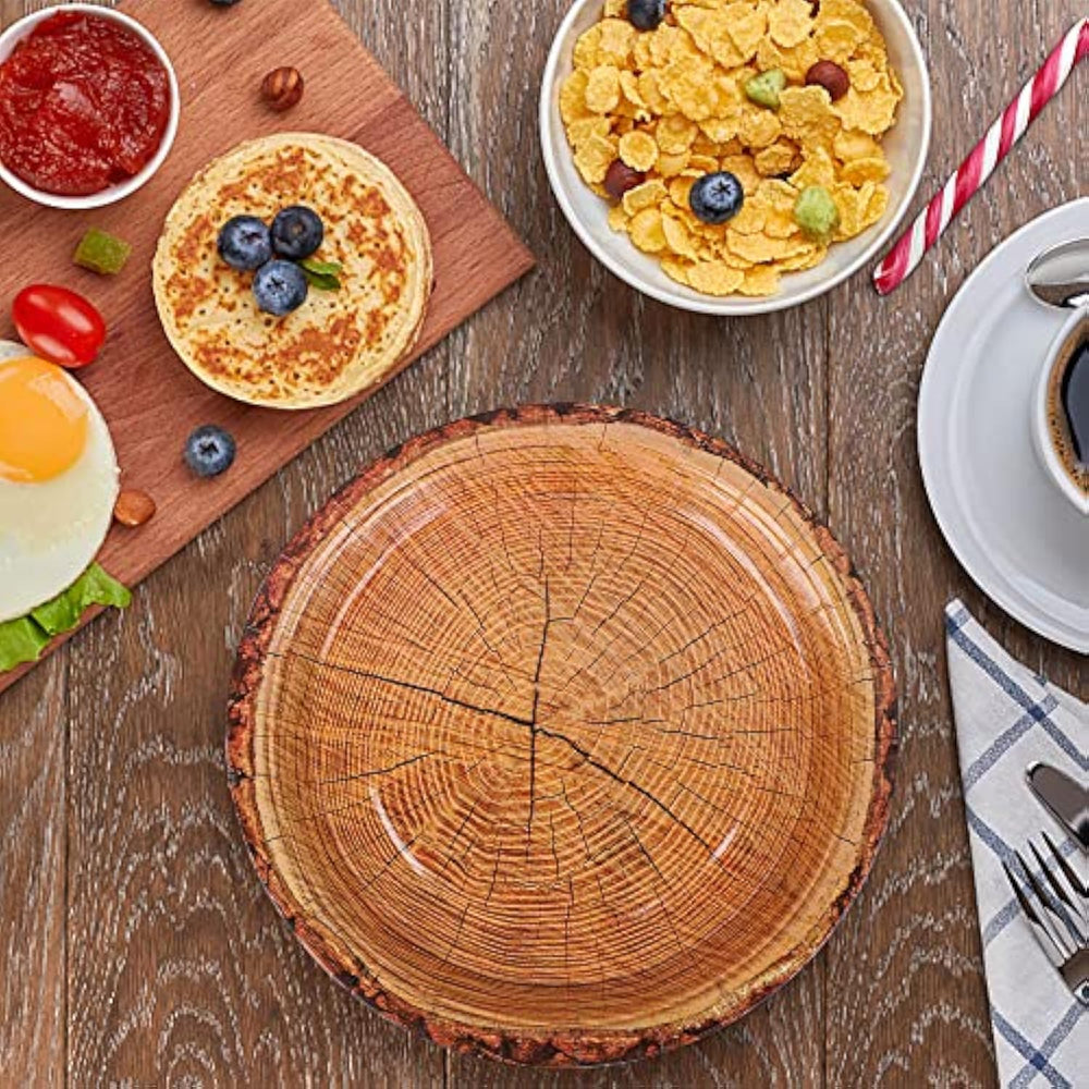 | Wood Grain Patterns: The Paper Plates Are Printed With Rustic Wood Grain Pattern, Including The Annual Ring, Crack And The Bark Trim, Very Realistic, Which Will Definitely Catch The Eye Of The Guests. Special Pattern Design With Clear And Vivid Printing, Not Prone To Fading. | | Large Amount: Featuring A Large Number Of 50, Applicable For Both Everyday Use And Party Use, And Can Serve Many Guests At One Time. You Can Also Use Them To Entertain