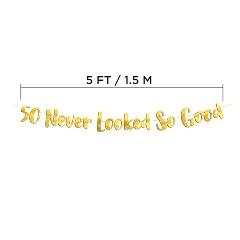 | Congrats On 50 Years Of Excellence! This Gold Glitter Banner Is The Perfect Decoration To Add A Touch Of Classy Decor And Welcome Your Guests To The Occasion. | | So Many Uses: Use It For A 50Th Birthday, Anniversary, Or Retirement Party! This Banner Is Sturdy But Not Heavy And Meant To Be Reused. | | Size: Banner Is Petite And Measures Approximately 1.5 Meters. First Great Above A Dessert Table Or Fireplace Mantle. | | Banner Comes Pre-Strung | |