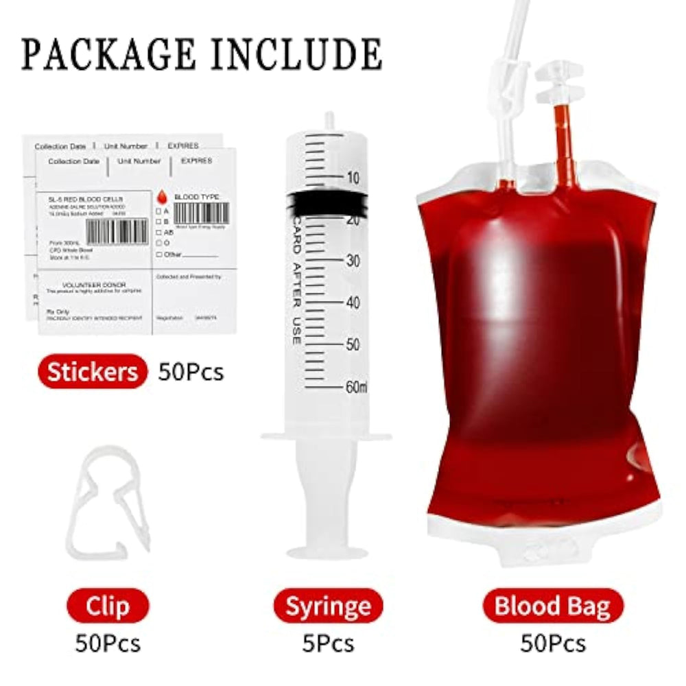 | Package Include – Our Halloween Iv Blood Bag Drink Pack Comes With 50 Blood Bags, 50 Labels, 50 Clips And 3 Syringes, Which Is A Spooky Addition To Your Yearly Halloween Party! | | High Quality – Halloween Blood Bag Drink Pouches Are Made Of Food Grade Pvc Material, Non-Toxic And Aseptic, Extremely Safe And Reusable For Drinking. | | Anti-Leak Design – Blood Bag For Drink Is Of Anti-Leak Design, The Lockable Clip And Leak-Free Cap Can Prevent Drink From Spillage. Enjoy Your Wonderful Halloween Night! | | Large Capacity – Each Halloween Blood Bag Can Hold 300Ml Drink At Most. The Syringes Are Provided Which Makes It Easy To Fill The Drink Into Iv Blood Bag. You Can Fill Blood Bag With Vodka, Juice, Whiskey, Soda And Etc. | | Wide Application – Perfect For Halloween Party Favors, Halloween Party Supplies, Halloween Decorations, Zombie Vampire Party Supplies, Doctor Nursing Graduation Party, Etc. | |