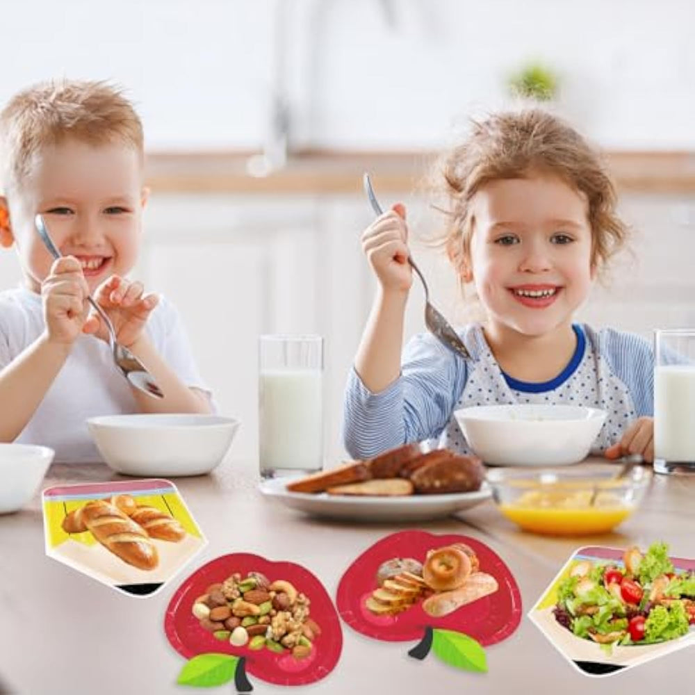 | Serves 50 Guests: Hosting A School Event This Back To School Plates Set Is Perfect For Up To 50 Guests, Featuring 25 Apple Plates (7 Inches) And 25 Pencil Plates (9 X 7 Inches). Whether It’S A Classroom Party, Teacher Appreciation Event, Or Preschool Gathering, These Themed Plates Add A Festive Touch While Making Serving Meals Effortless. Ideal For Both Small Get-Togethers And Large Celebrations, They Ensure You Have Everything Needed For A Fun And Organized Meal Setup | | Bright Festive Design: Nothing Says Back To School Like Apples And Pencils! These Apple Paper Plates And Pencil Plates Bring A Cheerful School-Themed Vibe To Any Event, Making Them Perfect For 1St Day Of School Decorations, Kindergarten Parties, And Classroom Gatherings. Their Vibrant Colors And Playful Patterns Create An Exciting Table Setting That Makes Mealtime More Fun For Students And Teachers Alike | | Heavy-Duty Reliable: Made From Premium, Thick Paper, These School Paper Plates Are Built To Handle Everything From Snacks To Full Meals Without Bending Or Leaking. Their Sturdy Construction Ensures They Stay Intact, Even With Heavier Foods, Making Them A Great Choice For Back To School Parties, Teacher Luncheons, And Classroom Celebrations. No More Flimsy Plates—Just Reliable Strength For All Your Party Needs | | Perfect For Any School Event: Designed For Versatility, These Plates Fit A Wide Range Of Occasions, Including Back To School Decorations Party, Preschool Events, Teacher Gatherings, And Student Celebrations. Beyond Just Being Functional Tableware, They Enhance The Overall Theme And Atmosphere, Making Your Event More Immersive And Festive. Great For Both Indoor And Outdoor Settings, These Plates Are A Must-Have For School-Related Parties | | Easy Cleanup, More Fun: Keep The Focus On The Fun, Not The Mess! These Disposable Kids Paper Plates Make Post-Party Cleanup Quick And Hassle-Free—Just Toss Them Out After Use. Their Lightweight, Portable Design Makes Them Perfect For Classroom Events, Outdoor Picnics, And Back To School Table Decorations, Allowing You To Enjoy More Time With Students, Teachers, And Guests Instead Of Worrying About Dishes | |