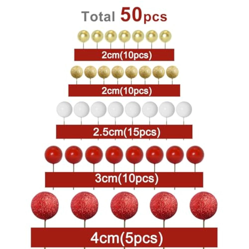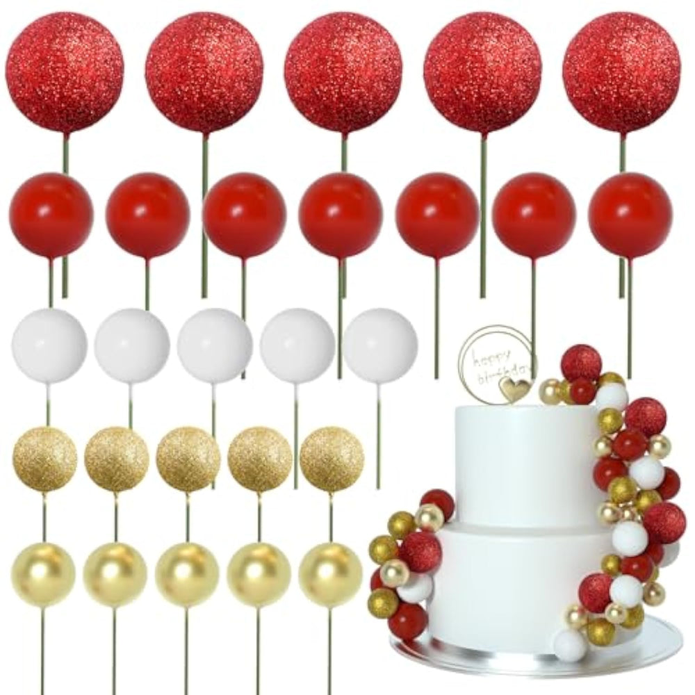 | Package Includes: 50 Pcs Cake Balls Decorations With Different Colors And Sizes. They Are Glitter Red? Red? White? Glitter Gold And Gold Colors As Shown In The Picture. | | Size: These Ball Cake Toppers, There Are 20 Balls With A Diameter Of 0.79 Inch/ 2 Cm, 15 Balls With A Diameter Of 0.98 Inch/ 2.5 Cm, 10 Balls With A Diameter Of 1.18 Inches/ 3 Cm, 5 Balls With A Diameter Of 1.57 Inches/ 4 Cm. The Combination Of Size And Color Will Decorate Your Cake More Layered And Delicate. | | Premium Material: These Colorful Balls Cupcake Toppers Are Made Of Foam And Wire. Safe To Decorate Food At Room Temperature, Such As Cake Or Dessert Decorating Use, Or Cupcakes, Fruits, Cheese And Any Appetizer You Want To Decorate. | | Party Cake Decorations: These Cake Decoration Balls Are Very Cute, Like Mini Balloons, Several Colors Have Been Matched And Combined, Very Suitable For Any Party Cake Decoration, Such As Birthday Party, Baby Shower, Garden Party, Home Party, Valentines, Wedding, Gender Reveal Party, Anniversary Party Cupcake Decorations. You Can Also Apply Them For Ice Cream, Fruits, Cookies And Other Desserts. | | Notice: These Colorful Balls Cake Decoration Are Disposable And Not Edible?Only For Decoration Purposes, And Please Do Not Use It In Oven Or Microwave?Some Glitter Will Fall Off The Surface Of The Ball. Please Knock Off The Excess Glitter Before Use. | |