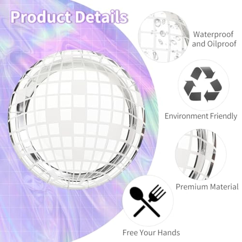 | Package Included: You Will Receive 50 Silver Disco Ball Paper Plates(9Inch*25+7Inch*25), Enough To Meet Your Daily Needs, And They Will Be A Great Addition To Your Party Activities | | High Quality Material: Our Disco Ball Plates Are Made Of High Quality Thick Paper Material, Odorless, Beautifully Printed, And Not Easy To Break And Fade. The Thickness Of The Plate Can Effectively Prevent The Formation Of Grease | | Disco Themed Design: Our Paper Plates Feature A Disco Ball Pattern With A Touch Of Retro Elegance, While The Delicate Silver Hue Enhances Its Resemblance To An Actual Disco Ball, Making It An Ideal Choice For Retro-Themed Disco Parties | | Enhance Convenience: These Disposable Disco Ball Dishes Allow You To Effortlessly Discard Them After The Party, Minimizing Cleaning Efforts And Saving Valuable Time | | Widely Application: The Vintage And Delicate Disco Ball Plates Are Ideal For A Variety Of Occasions Such As Birthdays, Parties, Weddings, Disco Parties, Rock Parties, 70S Chic Parties, And Other Special Events. They Can Also Be Used For Picnics, Camping Trips, And Various Outdoor Activities | |